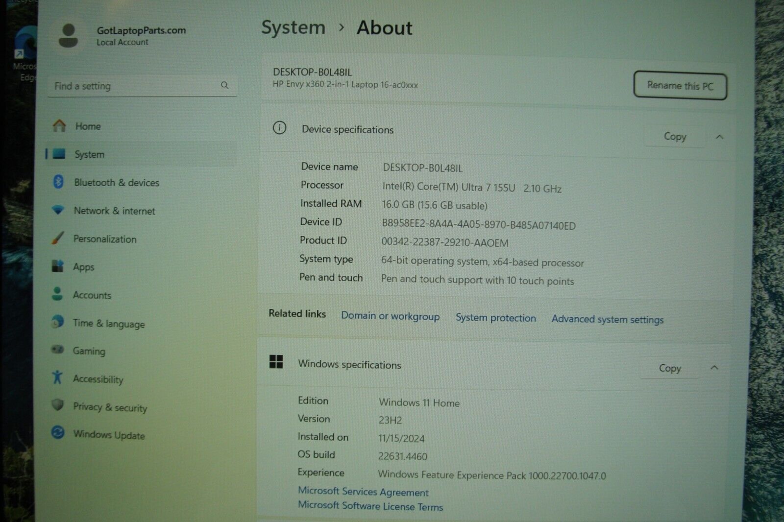 HP Envy x360 Laptop 16-ac0023dx (9S1R6UA) Intel core ULTRA 7 155U 2.10 GHZ 16 GB ram 16" diagonal, WUXGA (1920 x 1200) Screen glass is clean 100% Battery in excellent condition according to battery report (image included) Cosmetic Condition: This laptop is in perfect cosmetic condition Working Condition: Excellent SSD Reset 1TB Top and bottom Cover: are clean (image included) Palmrest, Keyboard and Touchpad: are clean ( images included) Carefully tested by technicians and reset to factory Windows 11 Home. Includes: original power adapter Warranty October 07, 2025 Experience the ultimate in versatility with the HP ENVY x360. This 2-in-1 laptop/tablet is equipped with an Intel Core ULTRA 7 processor and 16GB of RAM, making it perfect for a range of uses. The 16" touchscreen display with a resolution of 1920 x 1200 . It comes with a 1TB SSD for ample storage and Intel Graphics for quality visuals. This laptop runs on Windows 11 Home and has a manufacturer's warranty until October 07, 2025. This laptop is in excellent cosmetic condition. Actual item picture. Items ship within 24 hours, after payment received (unless weekend or holiday). Family Owned and operated Business for 15 years, Buy with Confidence. We value your time and business. Warranty October 07, 2025