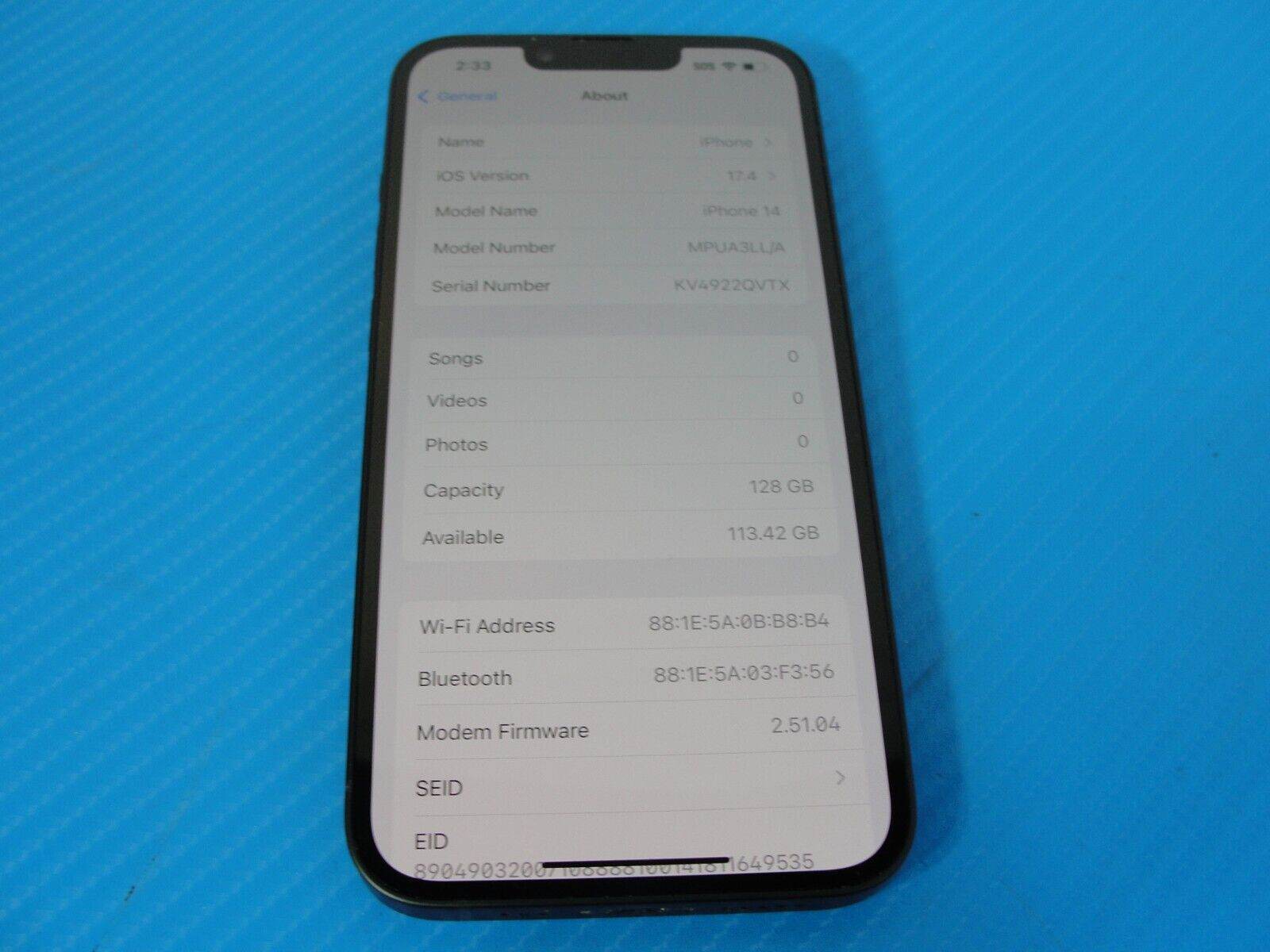 - Factory Unlocked Apple iPhone 14 eSIM 128GB Midnight Black MPUA3LL/A /GOOD Factory Unlocked Apple iPhone 14 eSIM 128GB Midnight Black MPUA3LL/A /GOOD