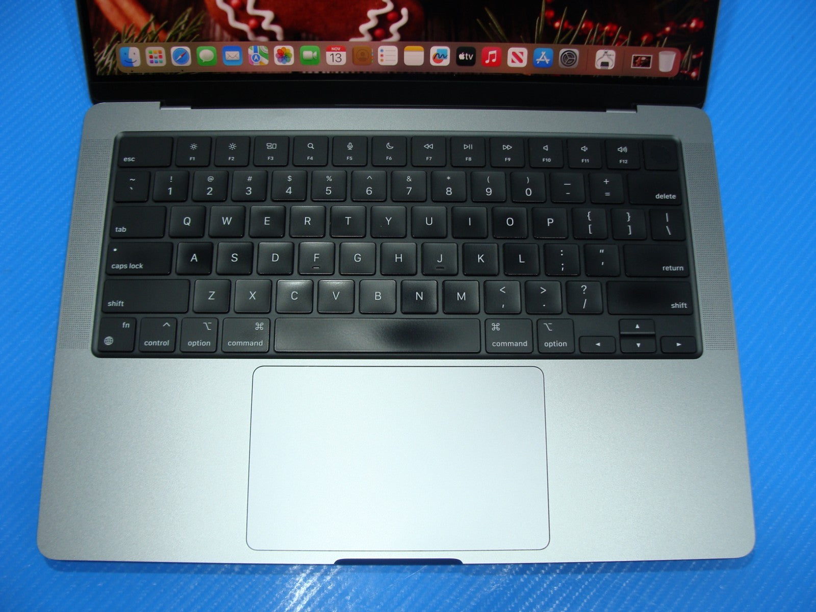 - The palmrest, keys and touchpad show little shine, no worn letters.