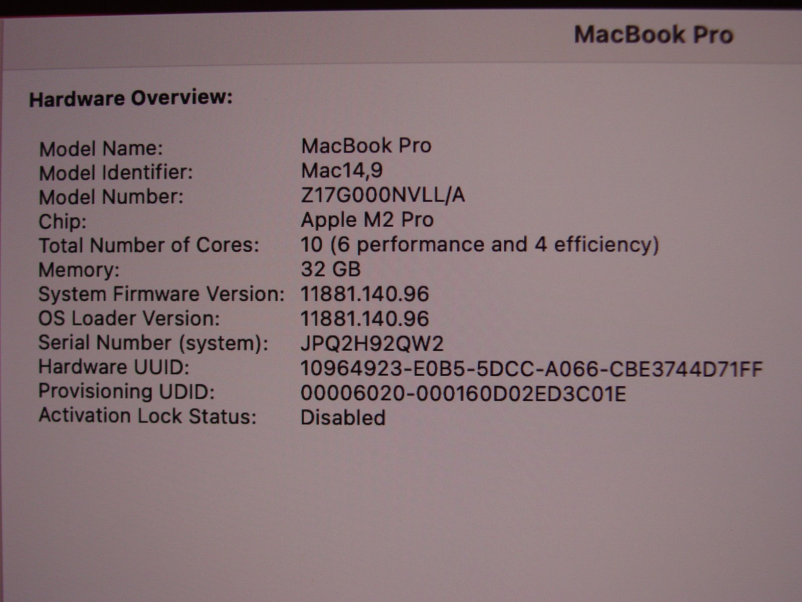 Processor: Apple M2 Pro