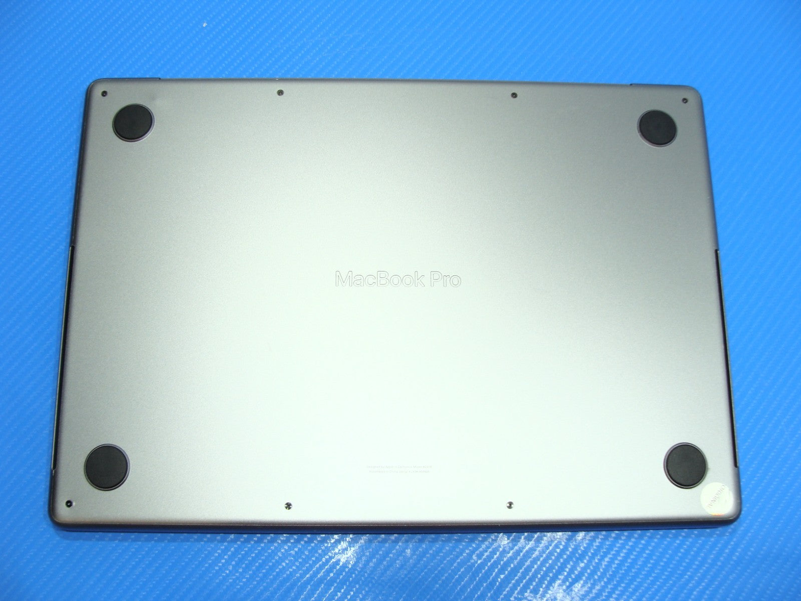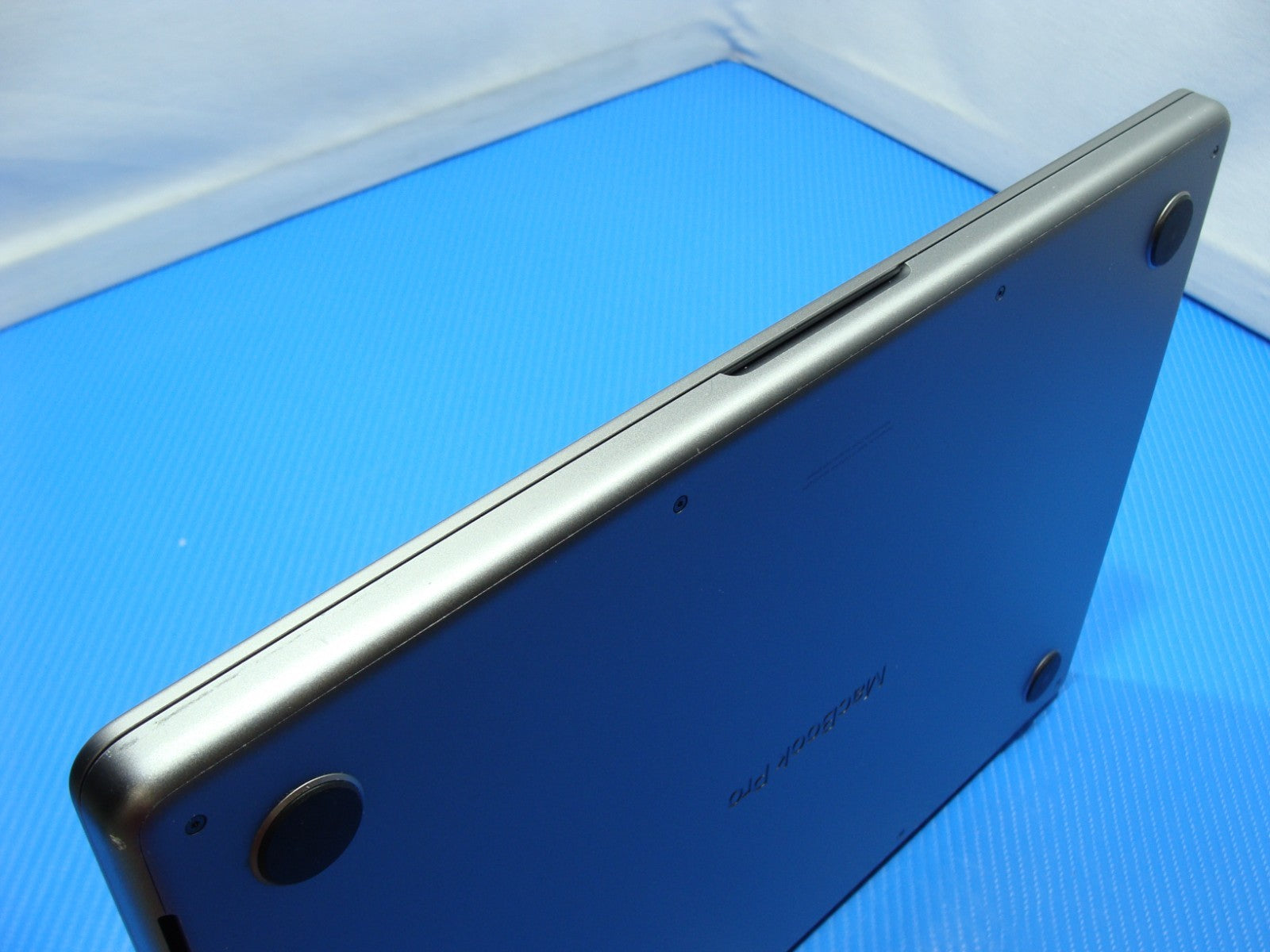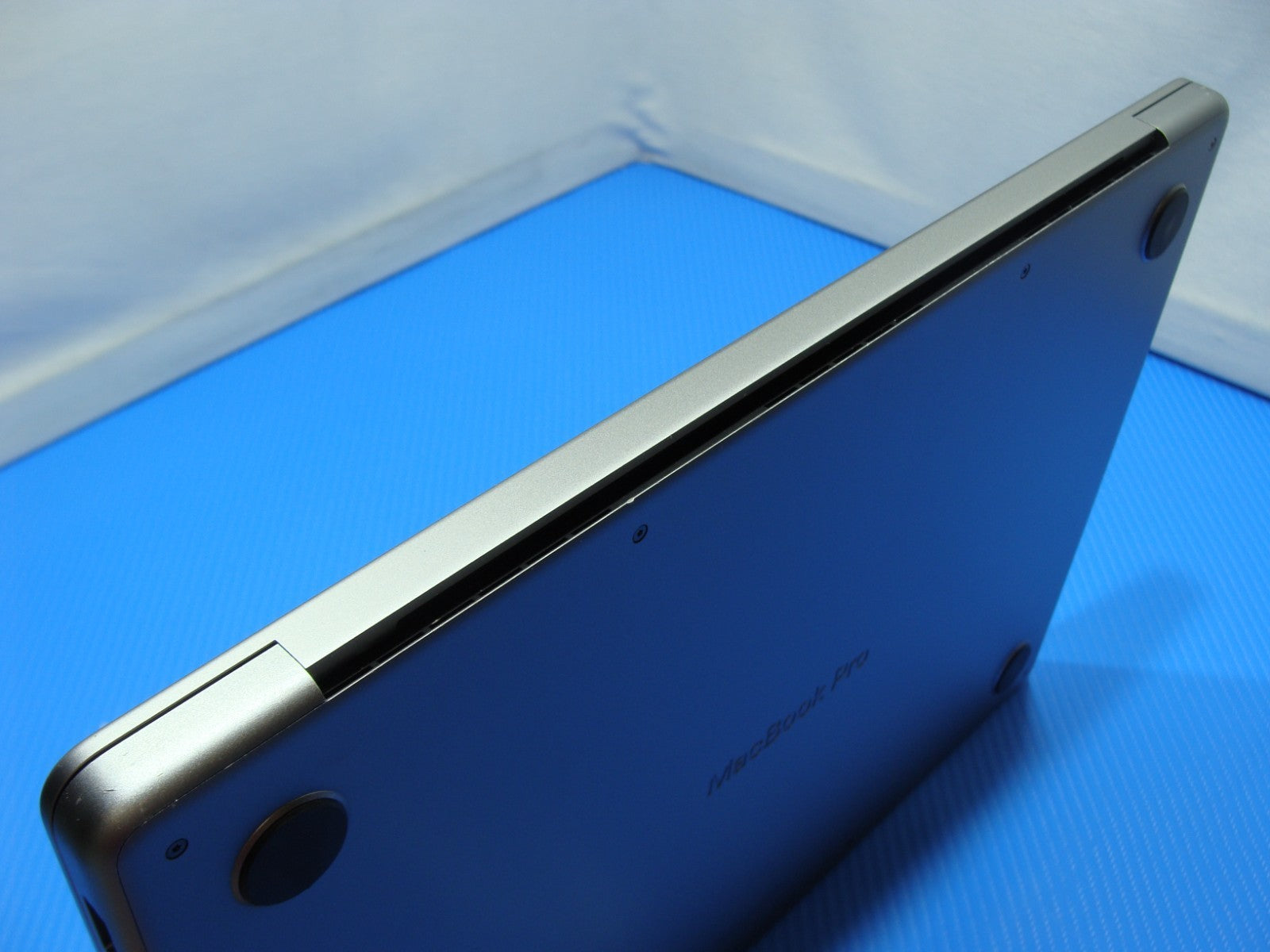 Defect: Cosmetic dent on the aluminum speaker grill near the keyboard.