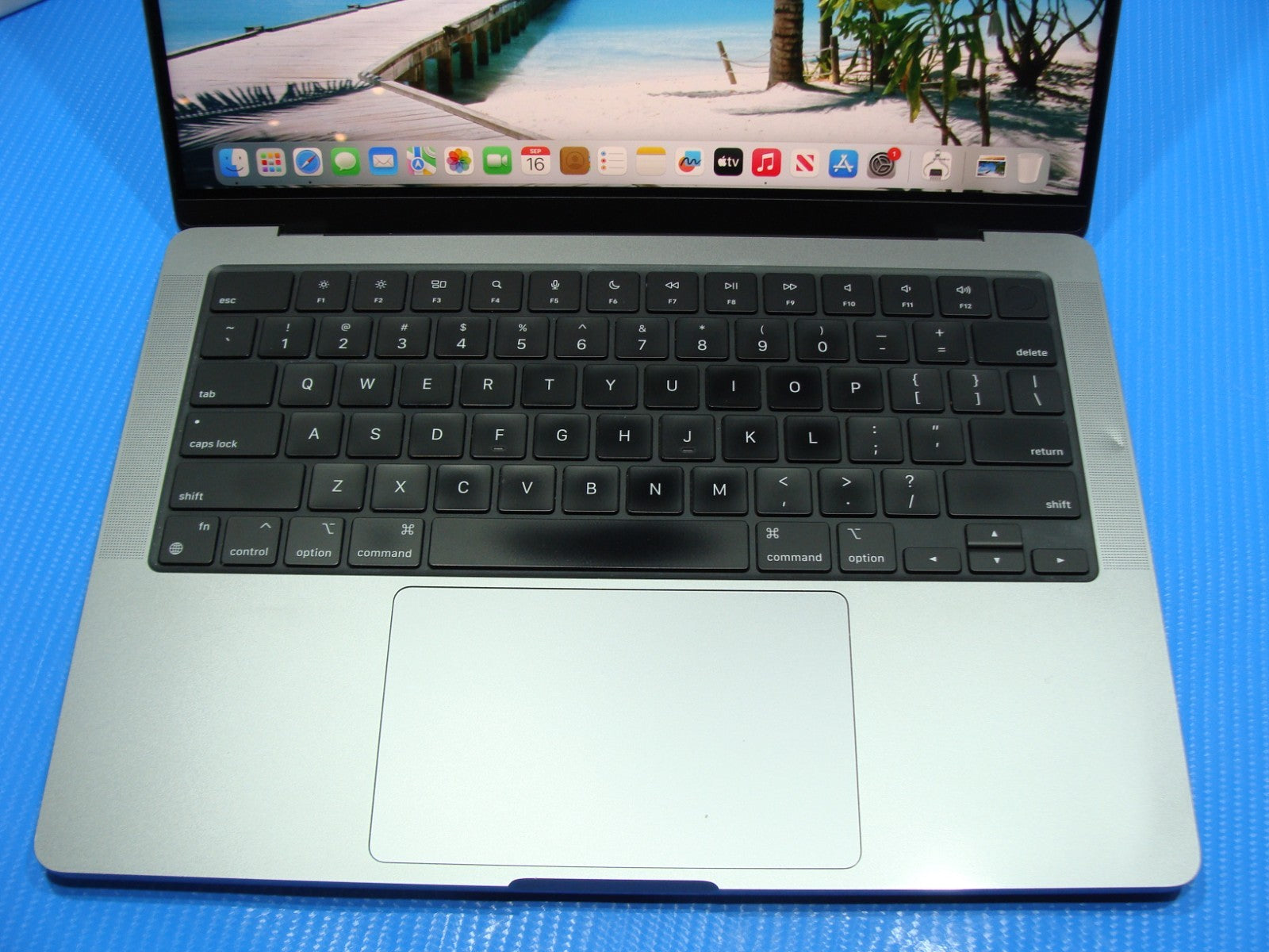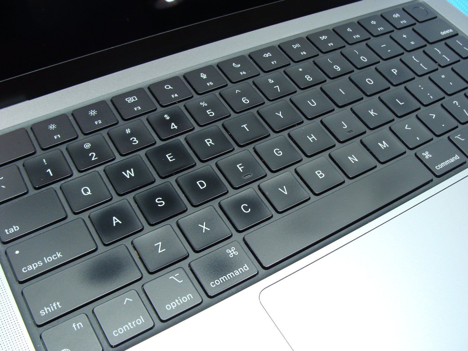 Keyboard: faint shiny after previous use, no worn letters.