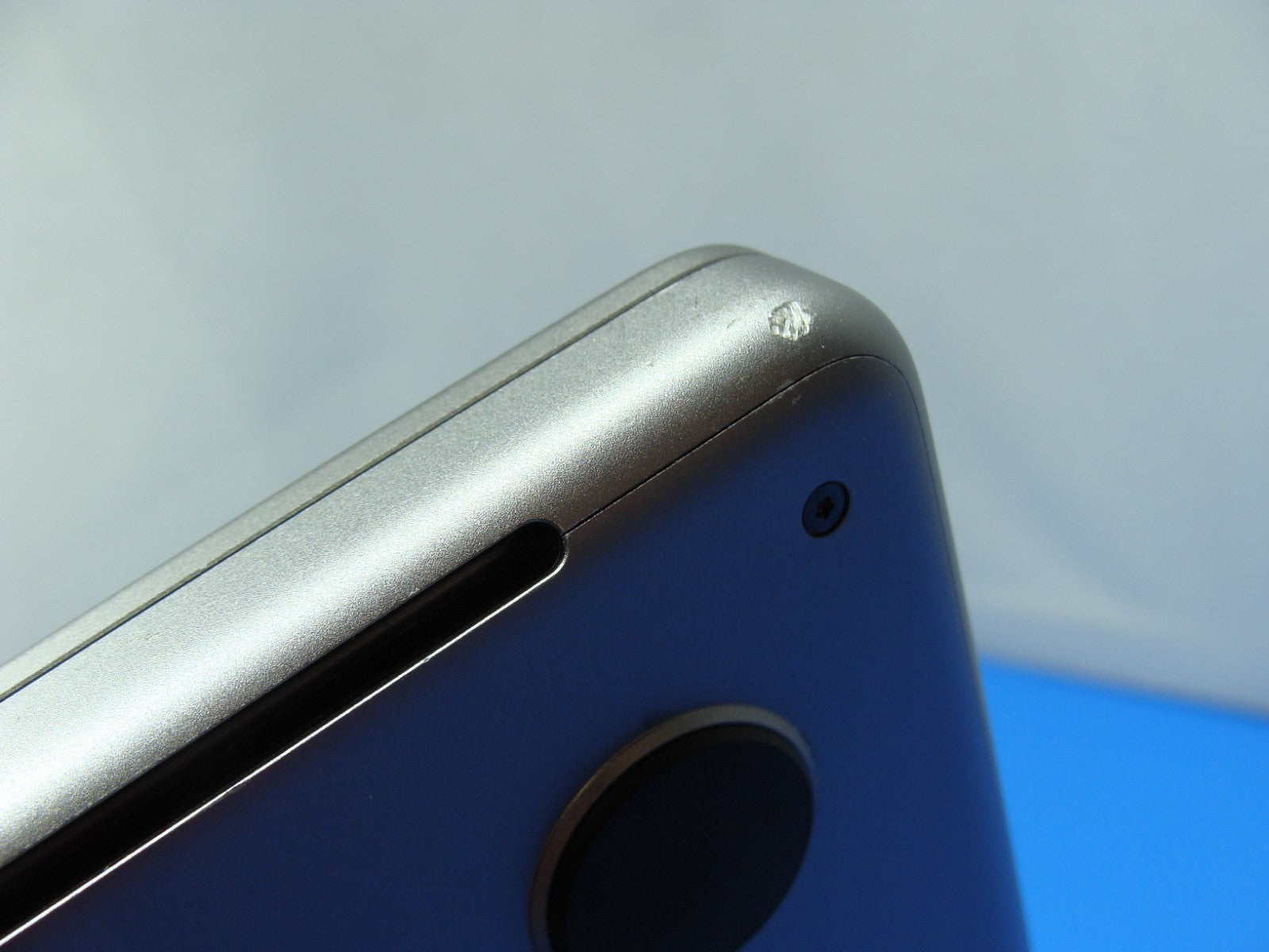 Defect 2: Small dent on the perforated speaker grill area (cosmetic only, does not affect functionality).