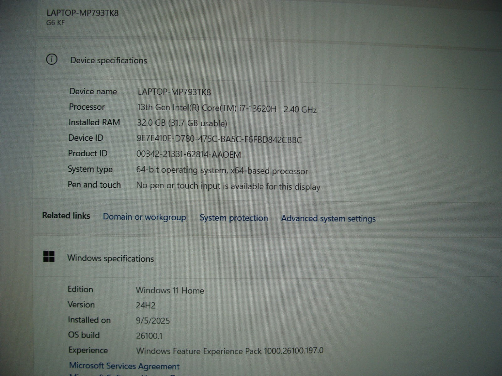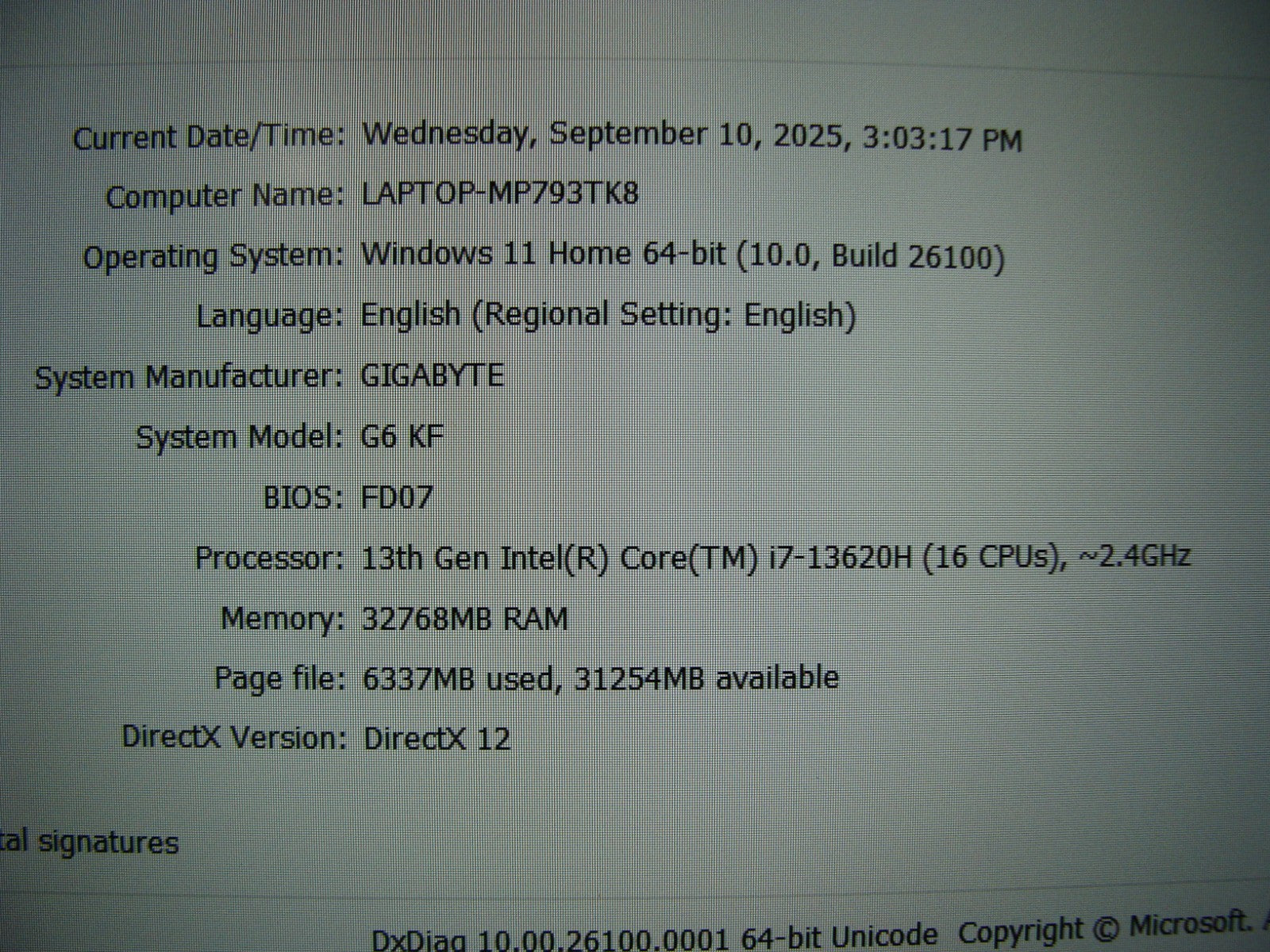 Model: Gigabyte G6 KF