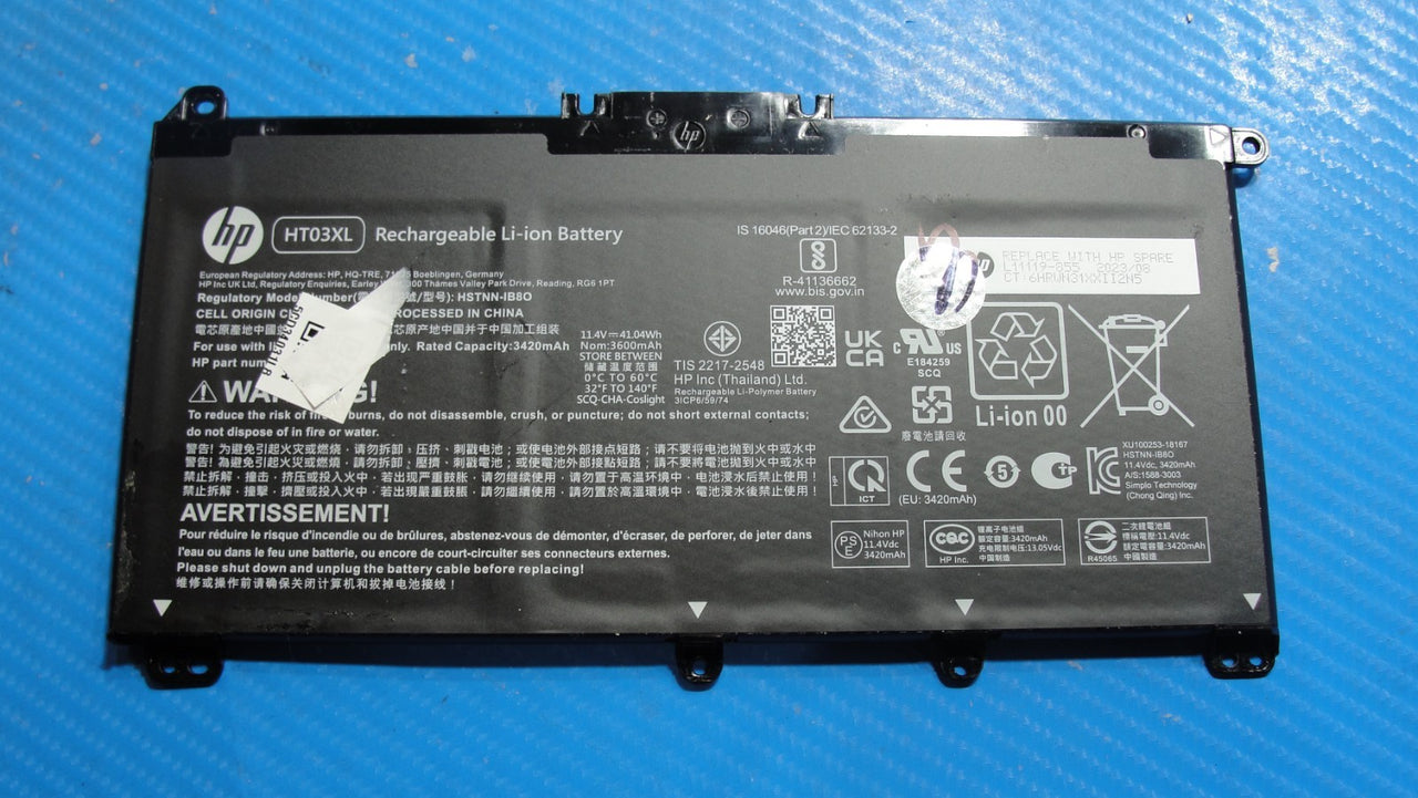 - HP 15.6” 15-dy5033dx Genuine Battery 11.4V 41.04Wh 3600mAh HT03XL L11119-855 HP 15.6” 15-dy5033dx Genuine Battery 11.4V 41.04Wh 3600mAh HT03XL L11119-855