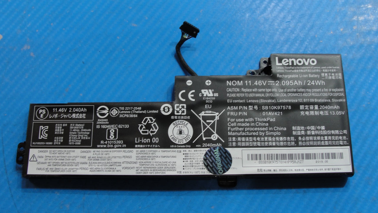 - Lenovo ThinkPad T480 14" Battery 11.46V 24Wh 2095mAh 01AV421 SB10K97578 92% Lenovo ThinkPad T480 14" Battery 11.46V 24Wh 2095mAh 01AV421 SB10K97578 92%
