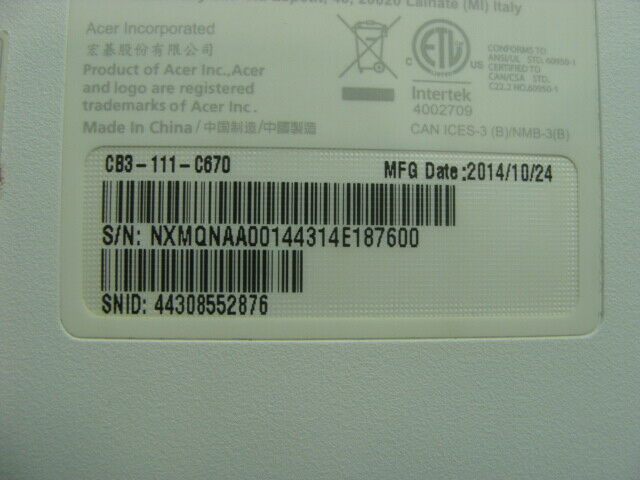 - Acer Chromebook CB3-111-C670 11.6" Genuine Bottom Case Base Cover EAZHQ005010 "A Acer Chromebook CB3-111-C670 11.6" Genuine Bottom Case Base Cover EAZHQ005010 "A
