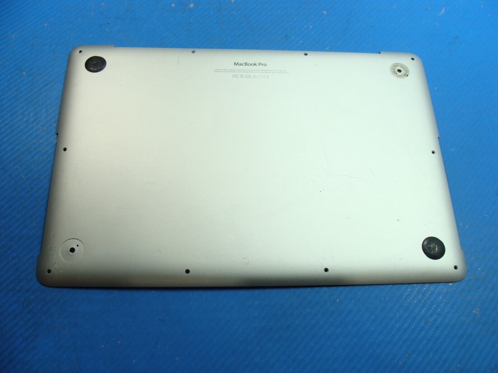 Bottom Case has been gently removed from a working MacBook Pro A1502 2015 MF839LL/A and is in GOOD working and cosmetic condition, shows minor scratches and marks. Missing rubber feet. Actual item pictured.