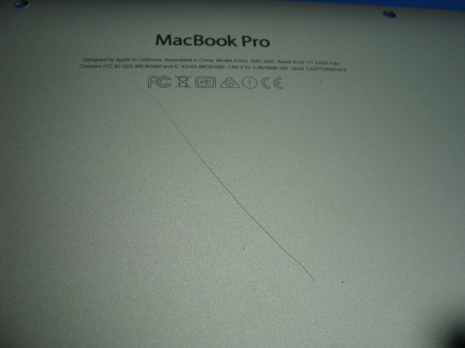 - MacBook Pro A1502 13" 2015 MF839LL/A Genuine Bottom Case Silver 923-00503 MacBook Pro A1502 13" 2015 MF839LL/A Genuine Bottom Case Silver 923-00503