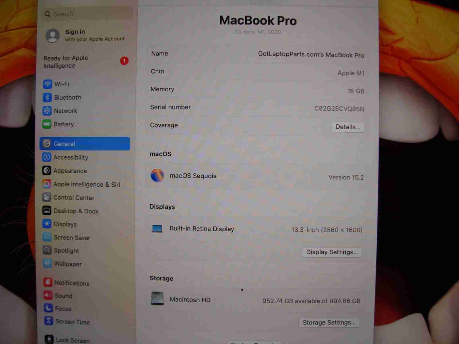 - Apple MacBook Pro 13.3" 2020 A2338 M1 8/8GPU 3.2GHz 16GB 1TB MYDA2LL/A Sequoia Apple MacBook Pro 13.3" 2020 A2338 M1 8/8GPU 3.2GHz 16GB 1TB MYDA2LL/A Sequoia