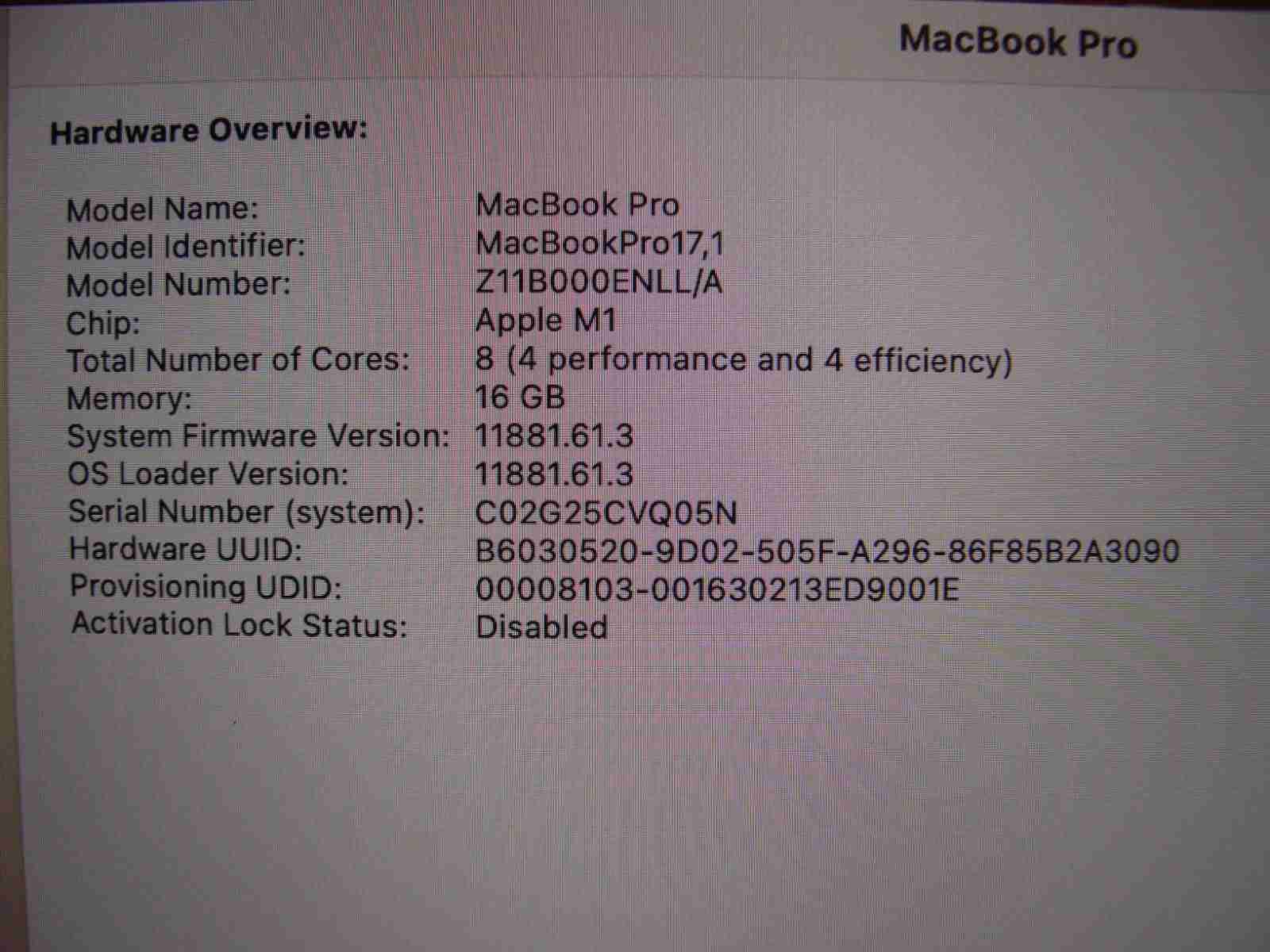 Model: MacBook Pro