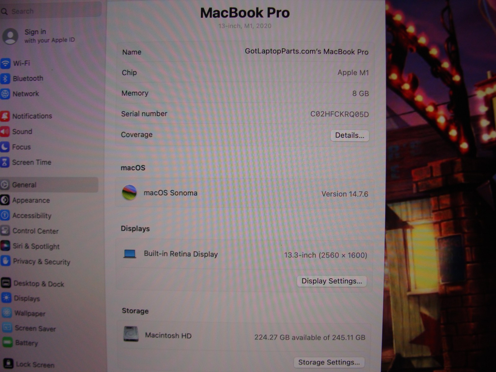 Apple MacBook Pro 13"2020 M1 8/8GPU 3.2GHz 8GB 256GB OS Sonoma A2338 / MYDA2LL/A