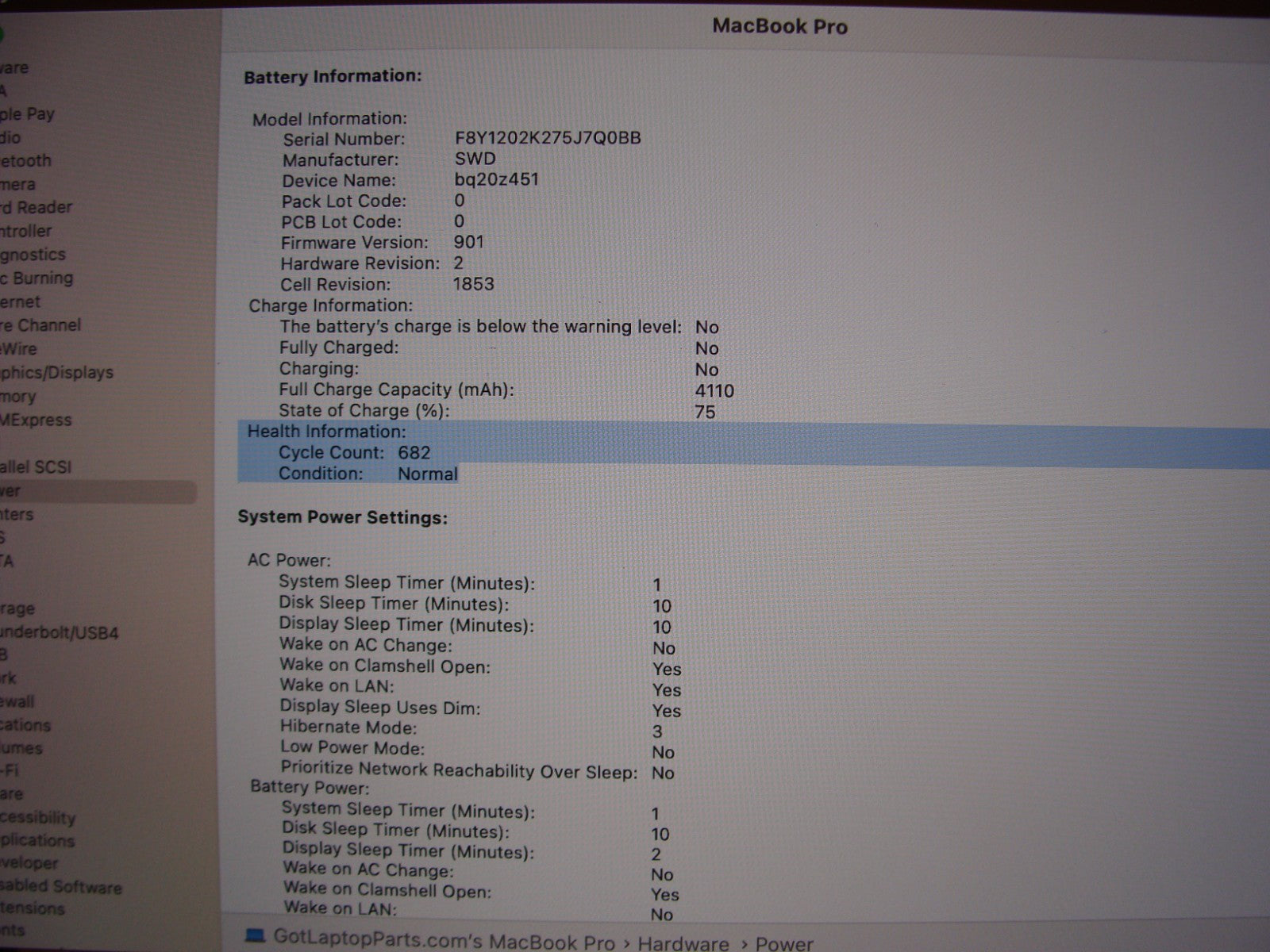 Battery Health: Good; 682 cycles