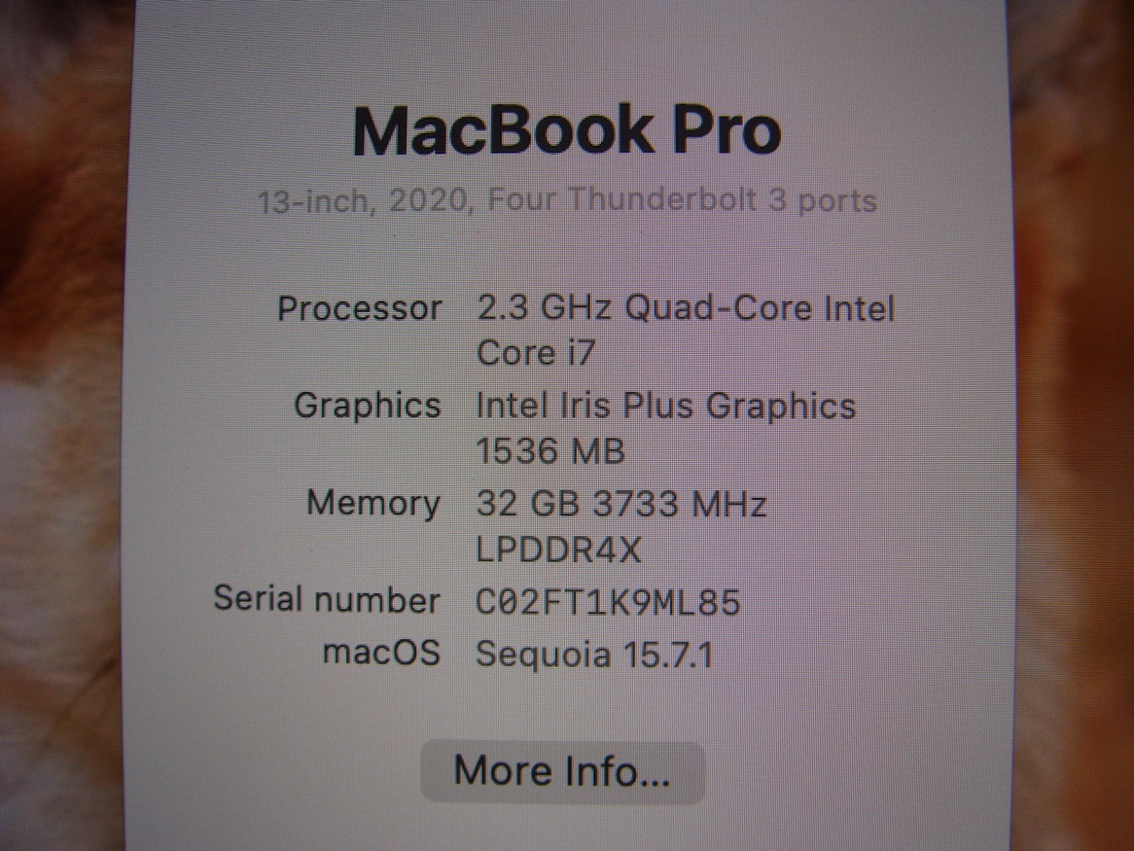 - Apple MacBook Pro 13" (2020) A2251/BTO i7-1068NG7 2.3GHz 32GB 1TB SSD +Charger Apple MacBook Pro 13" (2020) A2251/BTO i7-1068NG7 2.3GHz 32GB 1TB SSD +Charger