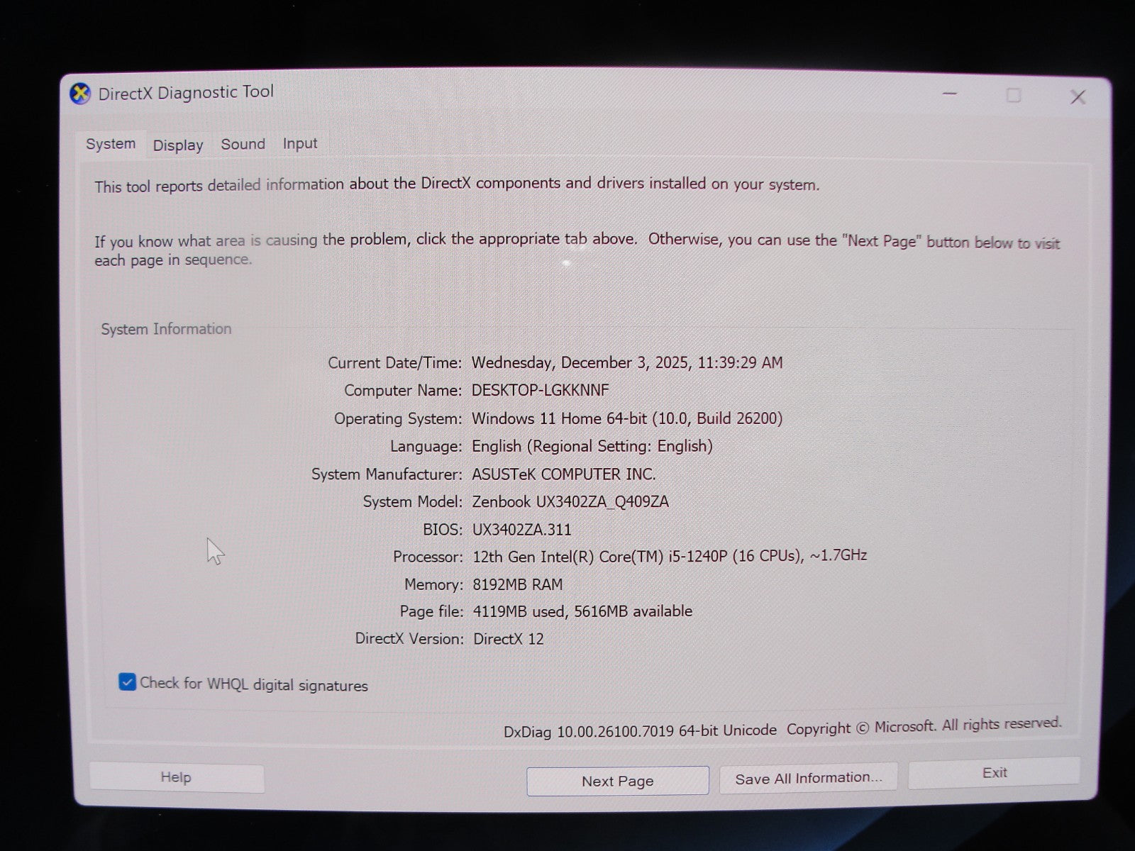 Operating System: Windows 11 Home