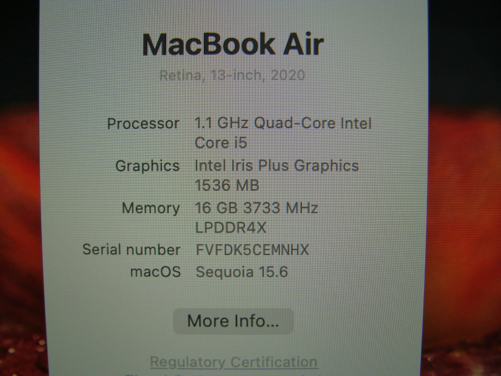 Apple MacBook Air 13.3" A2179 2020 i5-1030NG7 1.1GHz 16GB 256GB Sequoia MVH2LL/A
