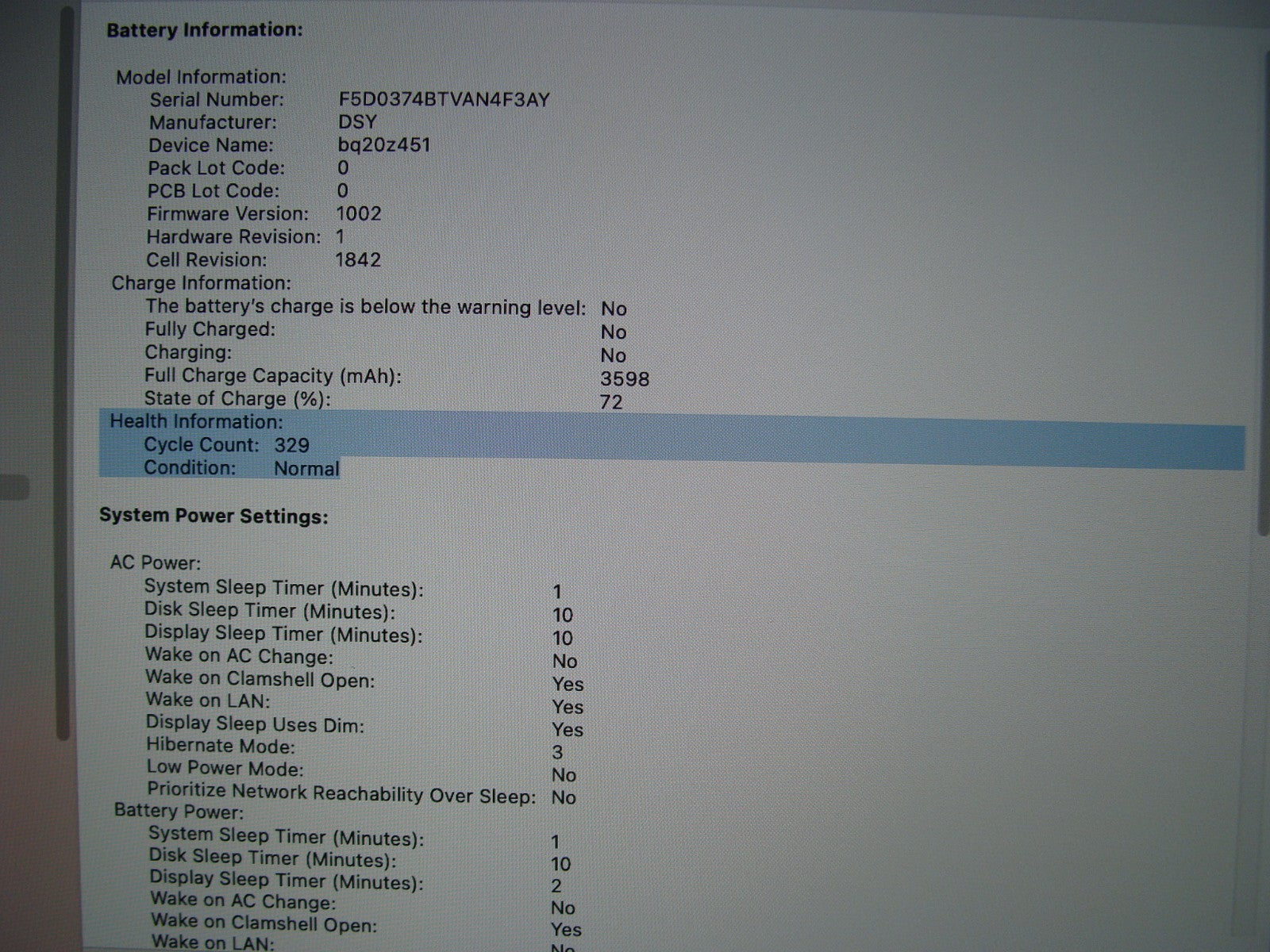 Battery Health: Good; 329 cycles