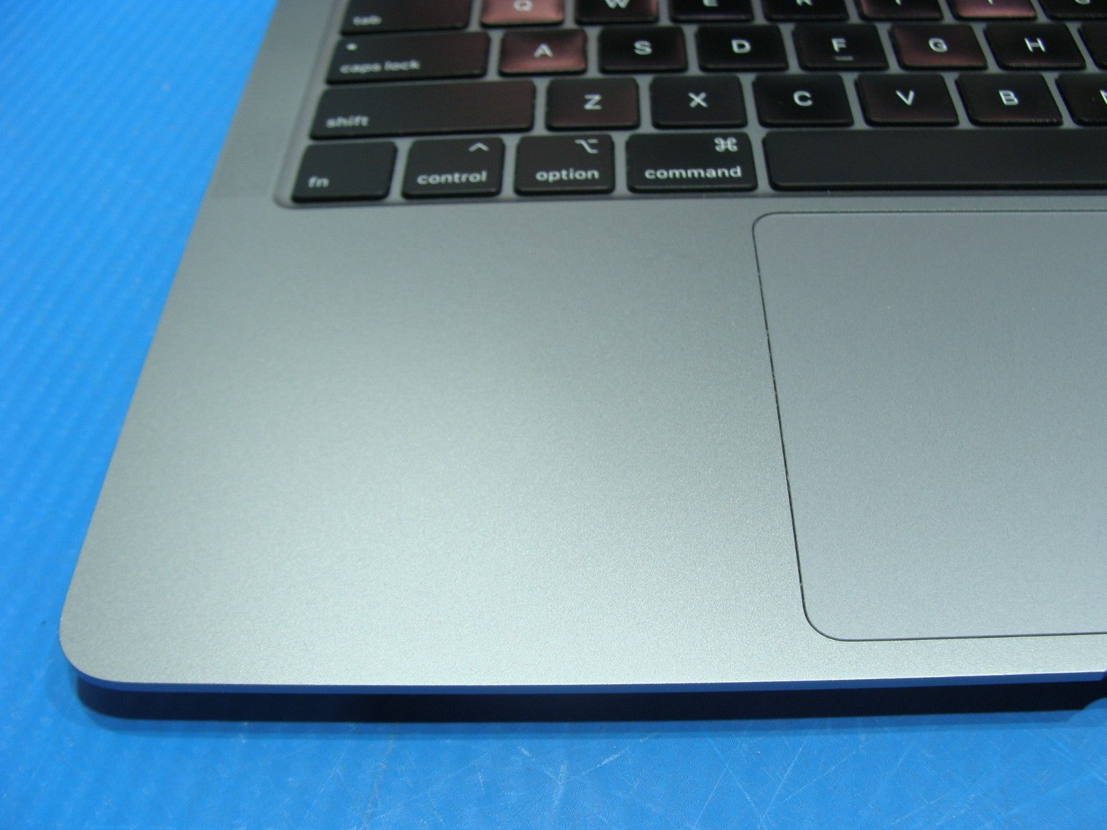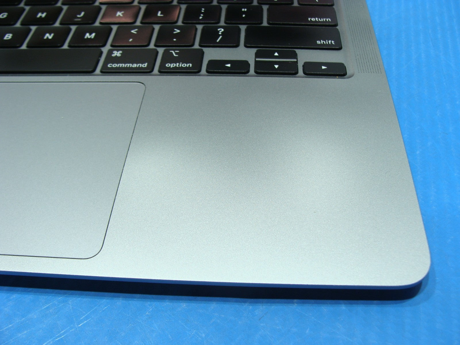 - The palmrest, keyboard, and touchpad show visible shine.
