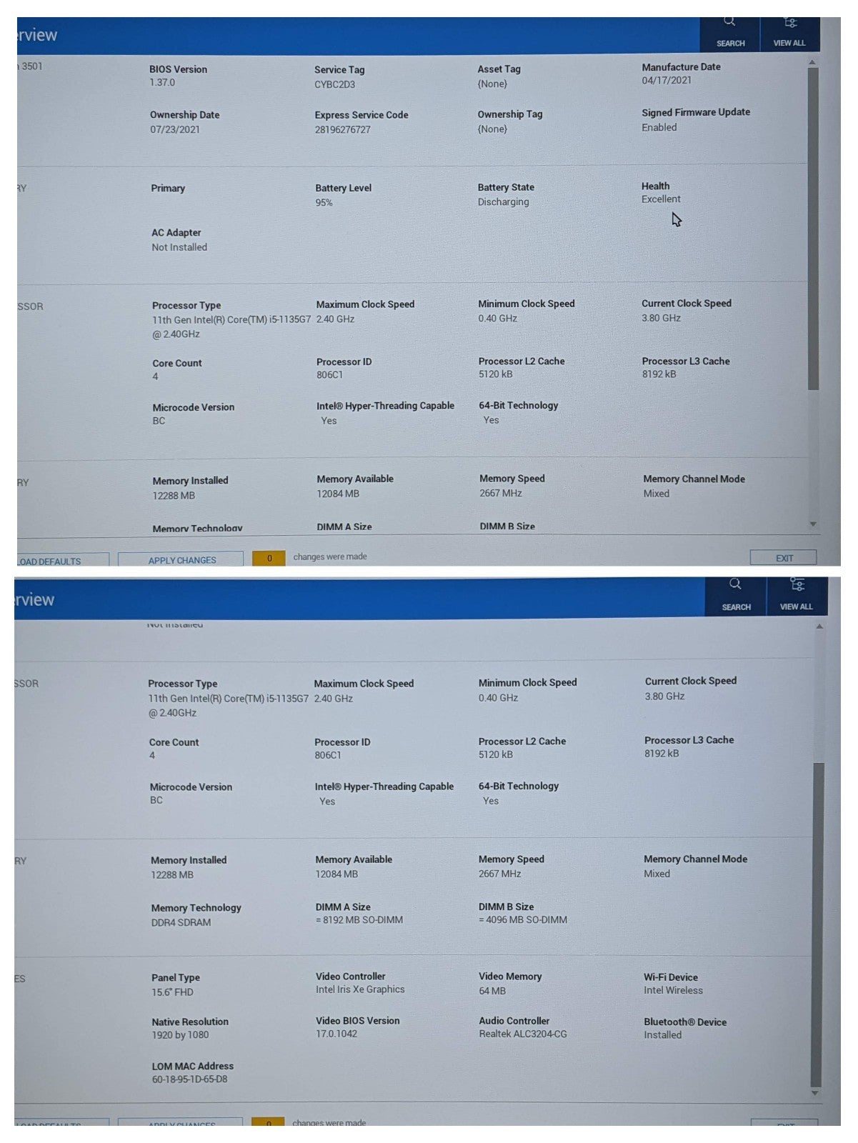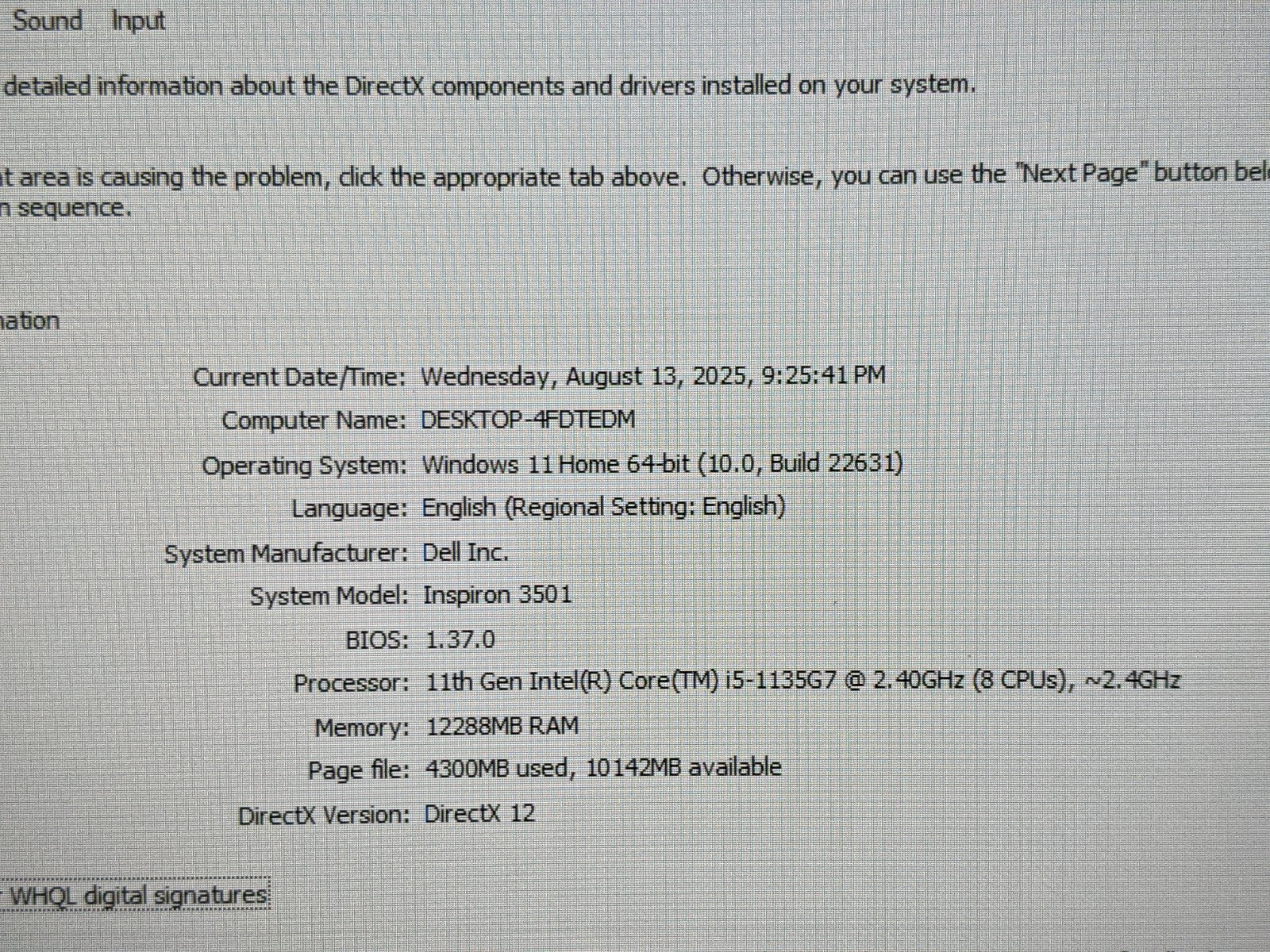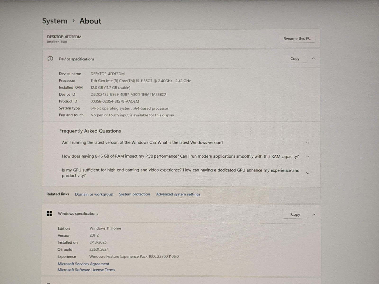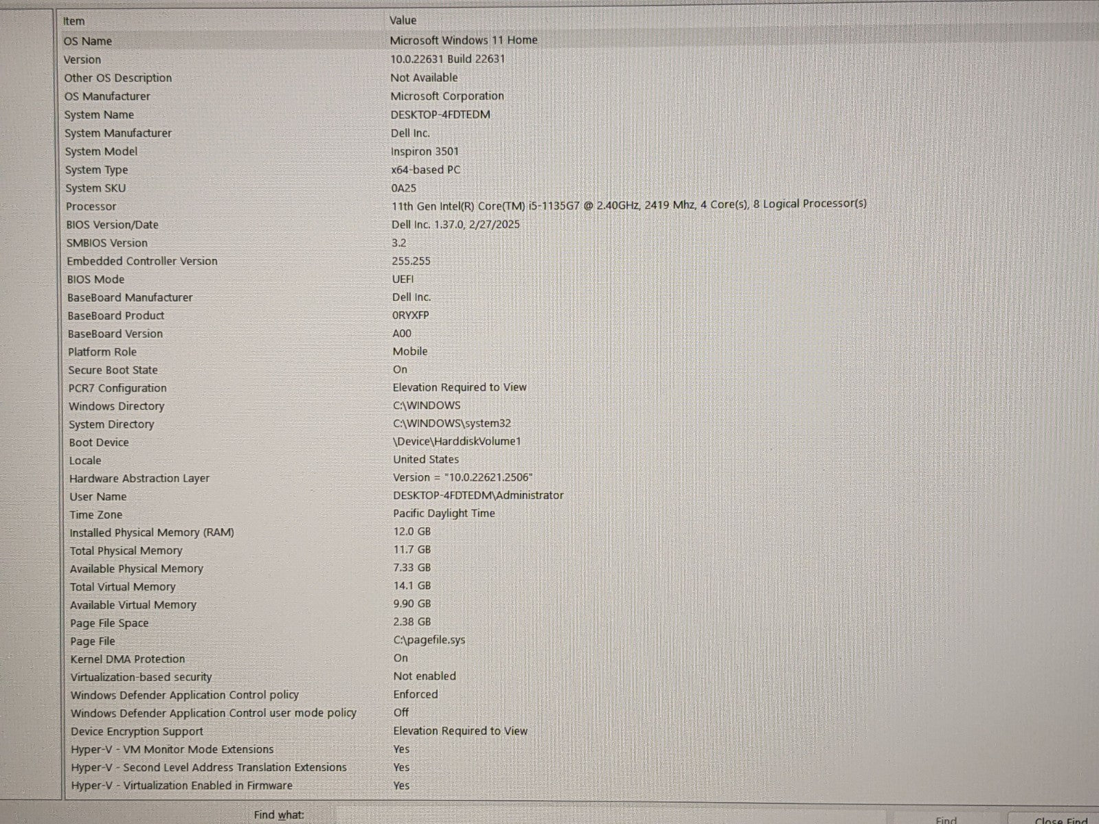 Model: Dell Inspiron 3501