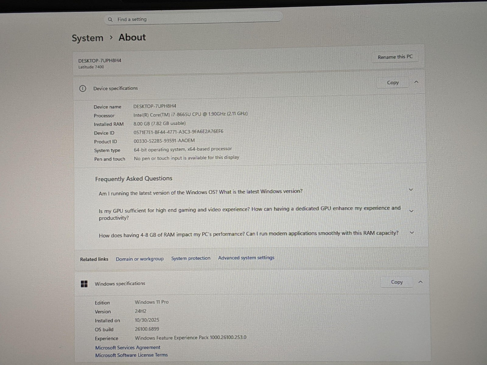 - Dell Latitude 7400 14" FHD Intel Core i7-8665U 1.9GHz 8GB 512GB SSD Win11Pro +PA Dell Latitude 7400 14" FHD Intel Core i7-8665U 1.9GHz 8GB 512GB SSD Win11Pro +PA