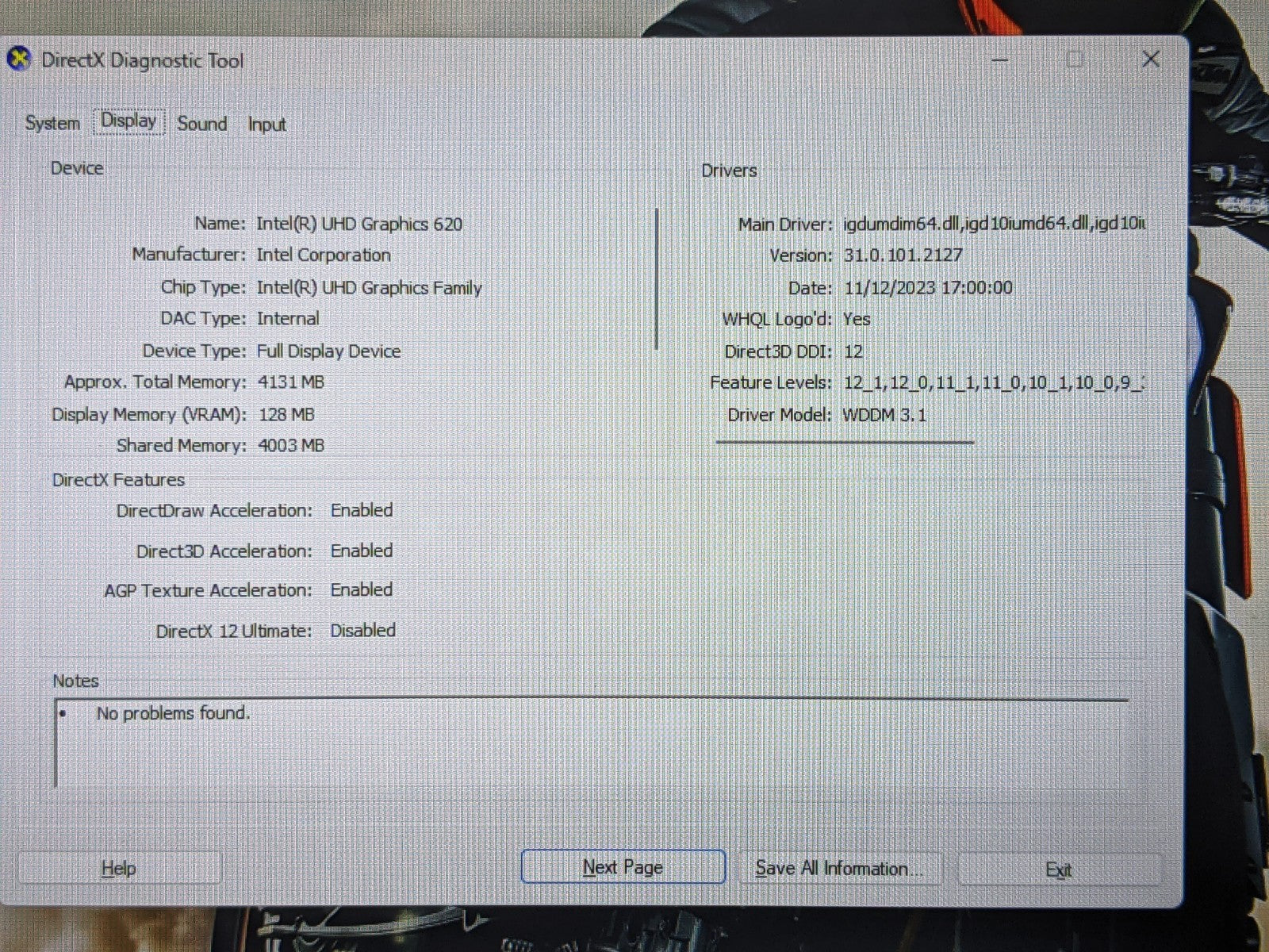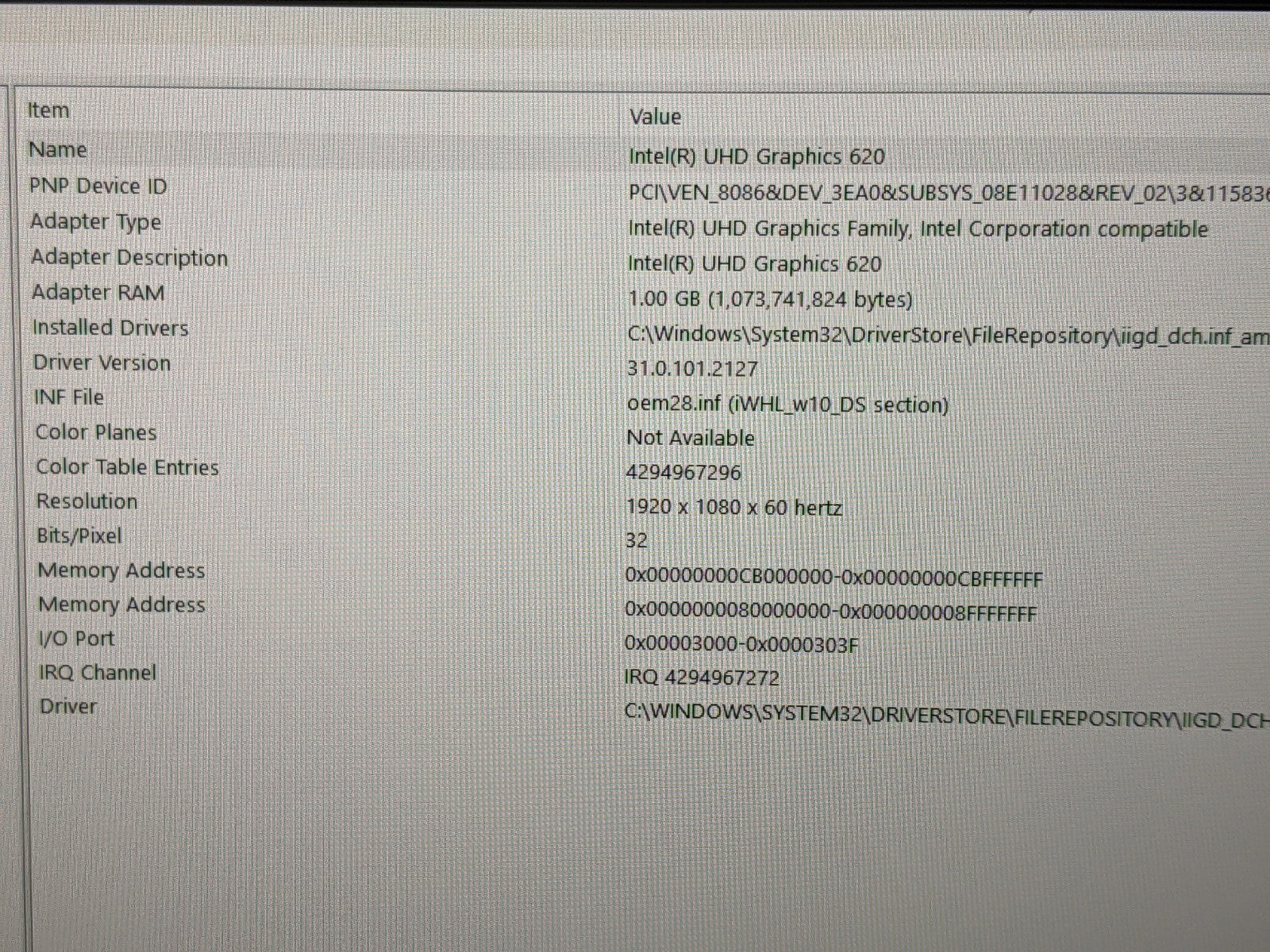 GPU: Intel UHD Graphics 620