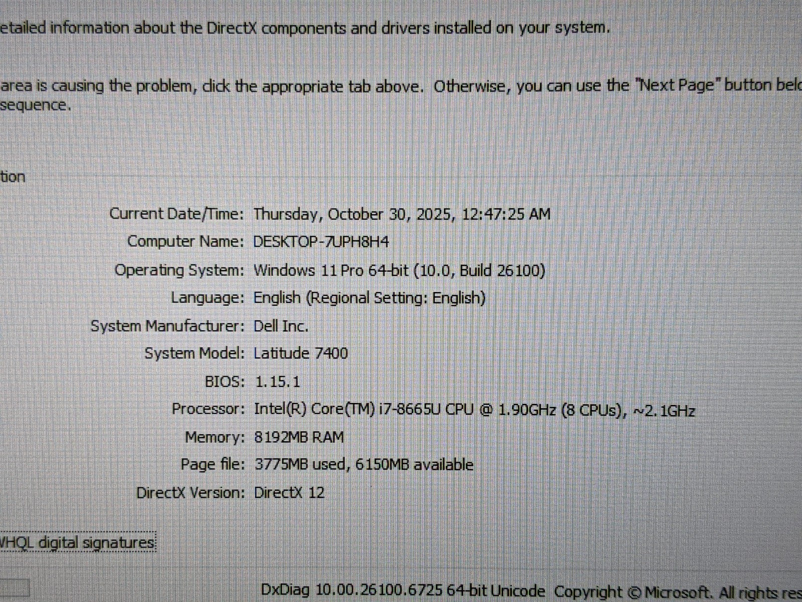 Model: Dell Latitude 7400