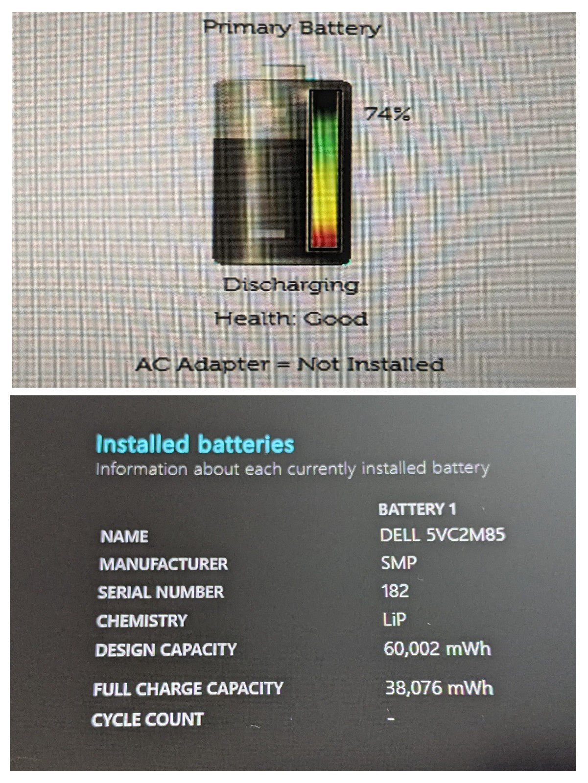 Battery: Used @63% (38 of 60 Wh)