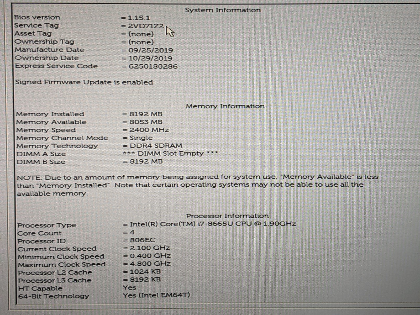 Processor Speed: 1.90 GHz