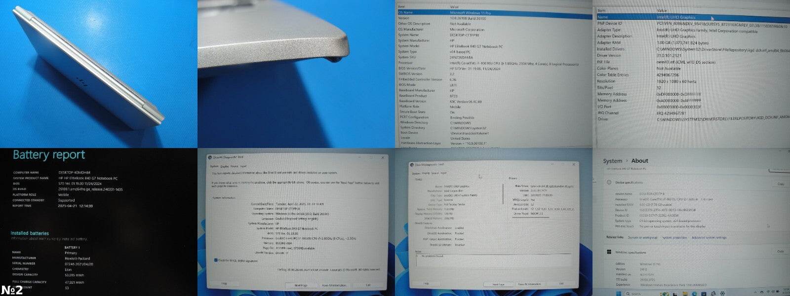 Cosmetic Condition: LCD – flawless, no keyboard marks Top cover – light signs of previous use with a small dent (see photos) Bottom cover – minor wear (see photos) Keyboard and palm rest – excellent condition Touchpad – slight gloss from previous use Frame – good condition ⚡ Includes the original power adapter Cosmetic Condition: LCD – no marks Top cover – visible dent on corner (see photos) Bottom cover – minor scratch and dent on the lower-left corner (see photos) Keyboard and palm rest – excellent condition Touchpad – slight gloss from previous use Frame – good condition ⚡ Includes the original power adapter Cosmetic Condition: LCD – clean and free from keyboard marks Top cover – excellent condition (see photos) Bottom cover – visible scratches from previous use (see photos) Keyboard and palm rest – excellent condition Touchpad – slight gloss from previous use Frame – good condition ⚡ Includes the original power adapter Cosmetic Condition: LCD – no keyboard marks Top cover – perfect condition (see photos) Bottom cover – clean with no signs of previous use (see photos) Keyboard and palm rest – excellent condition Touchpad – slight gloss from previous use Frame – good condition ⚡ Includes the original power adapterHP EliteBook 840 G7 14”FHD Intel Core i7-10610U 1.8GHz 8GB 256GB SSD + Original Charger