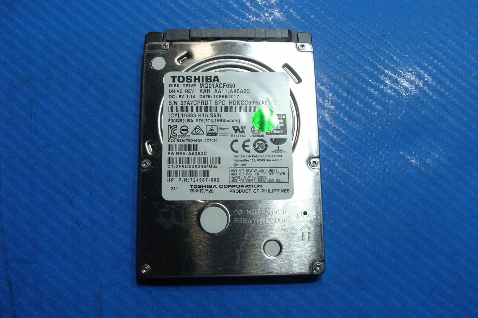 - HP 250 G5 Toshiba Sata 2.5" 500GB HDD Hard Drive MQ01ACF050 724967-002 HP 250 G5 Toshiba Sata 2.5" 500GB HDD Hard Drive MQ01ACF050 724967-002