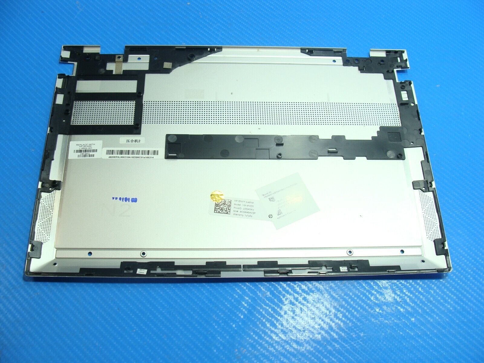 Bottom Case has been gently removed from a working HP Envy 13t-ah000 laptop and is in GOOD working and cosmetic condition, shows faint signs of previous use. Missing rubber feet. Actual item pictured.