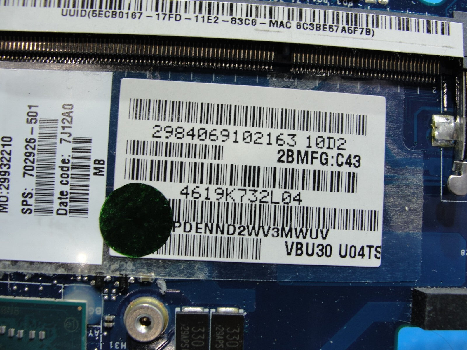HP Envy Sleekbook 4 14" Intel i5-3317u 1.70GHz Motherboard 702926-501
