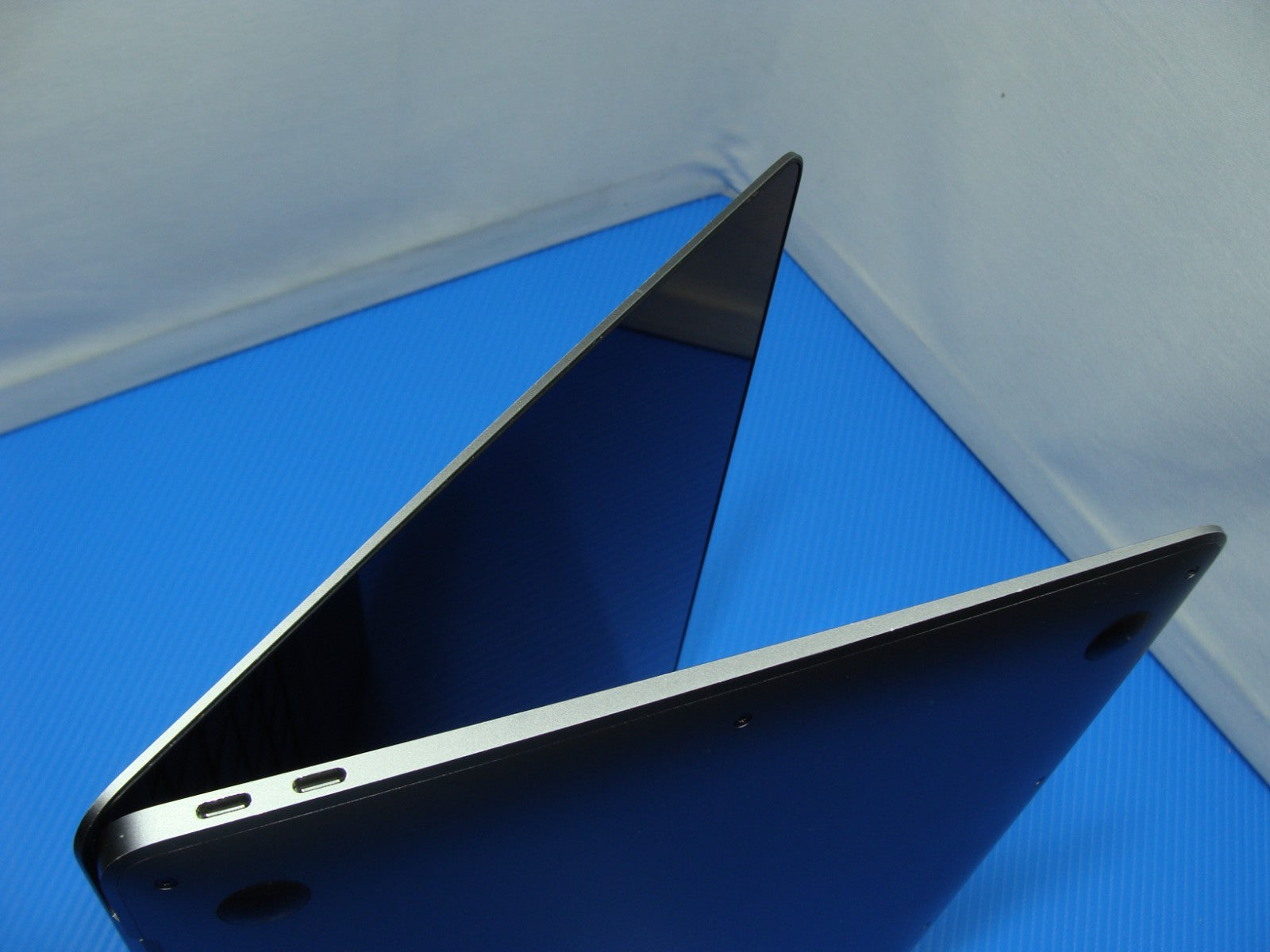 - There is a noticeable dent with chipped paint on the edge of the top case. This is a cosmetic issue and does not affect the device's performance.
