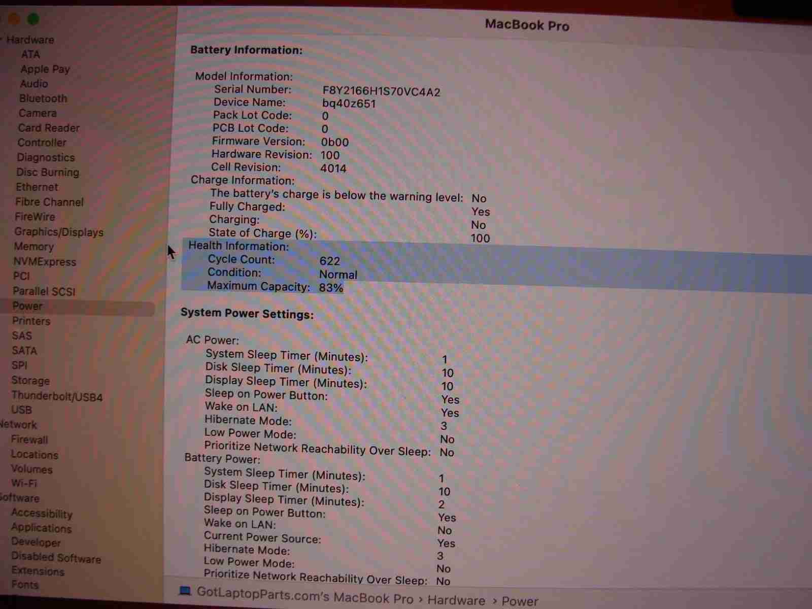 Battery: 83% 622 cycles