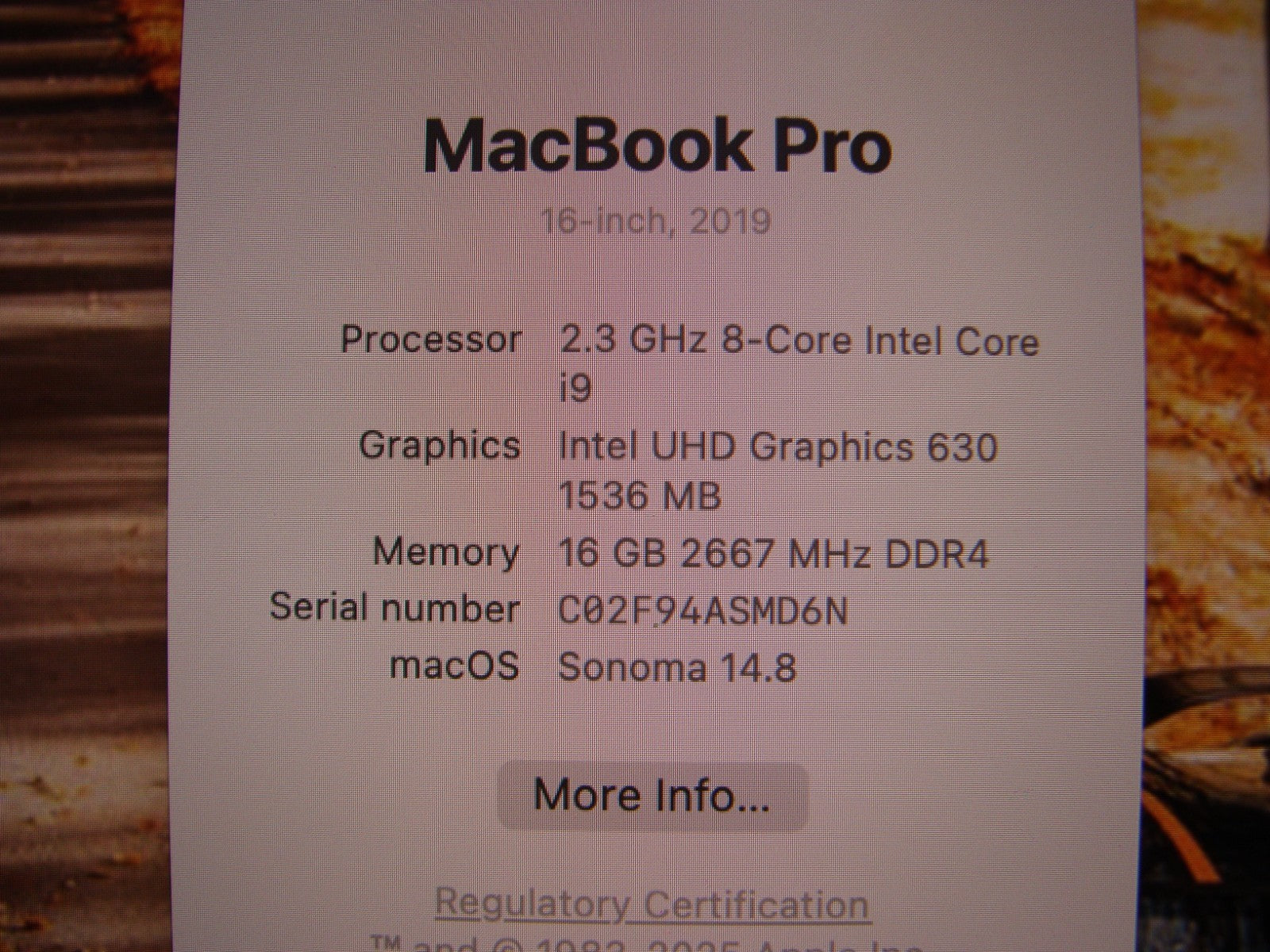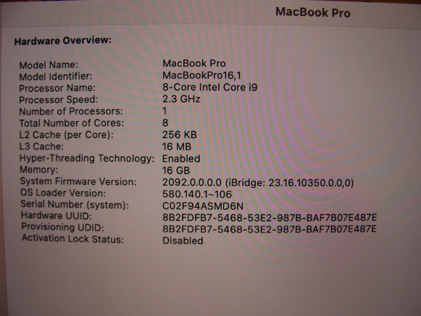 Serial Number: C02F94ASMD6N