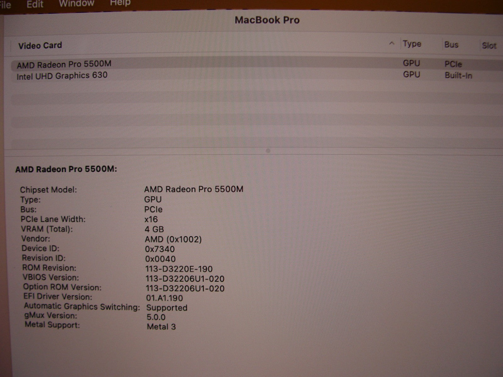 GPU: AMD Radeon Pro 5500M