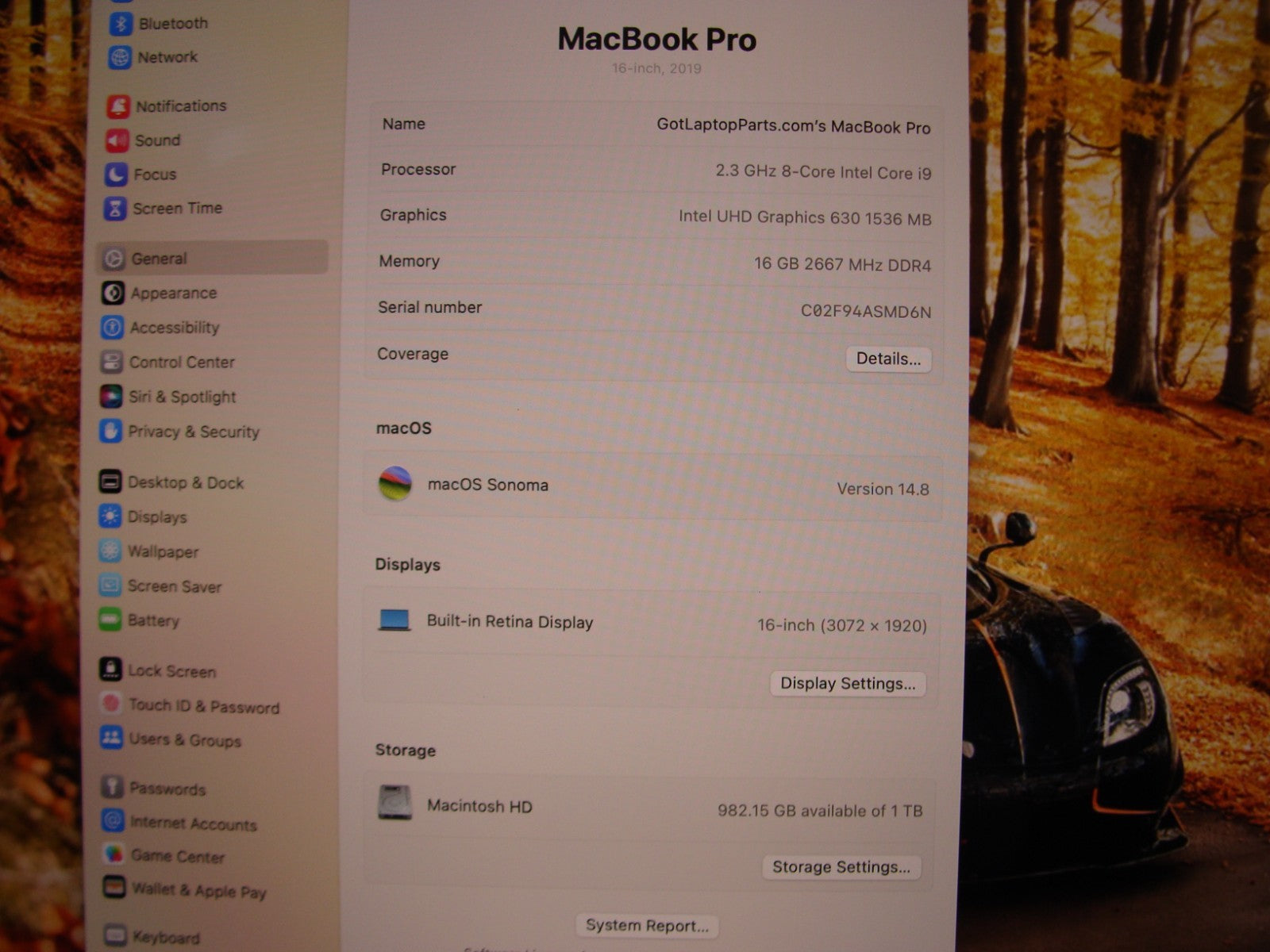 Operating System: macOS 14.0, Sonoma