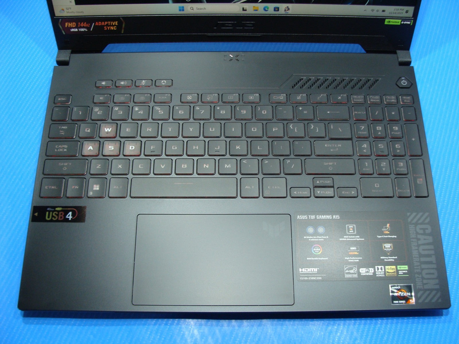 LIKE NEW POWERFUL gaming Laptop ASUS TUF FA507NV-EH53 15.6" FHD 144Hz AMD Ryzen 5 7535HS 3.3GHz 16GB 512GB NVIDIA GeForce RTX 3050 4G 94% Battery