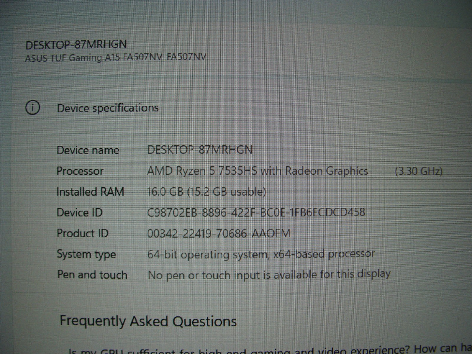 Model: ASUS TUF FA507NV-EH53