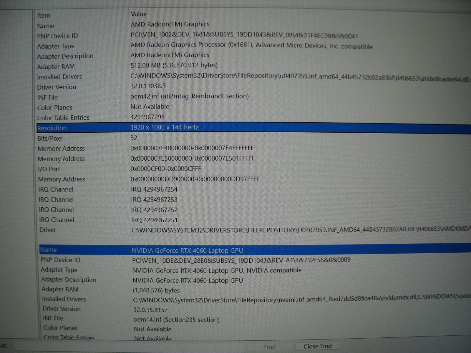 144Hz 15.6" FHD LCD Screen resolution 1920 x 1080