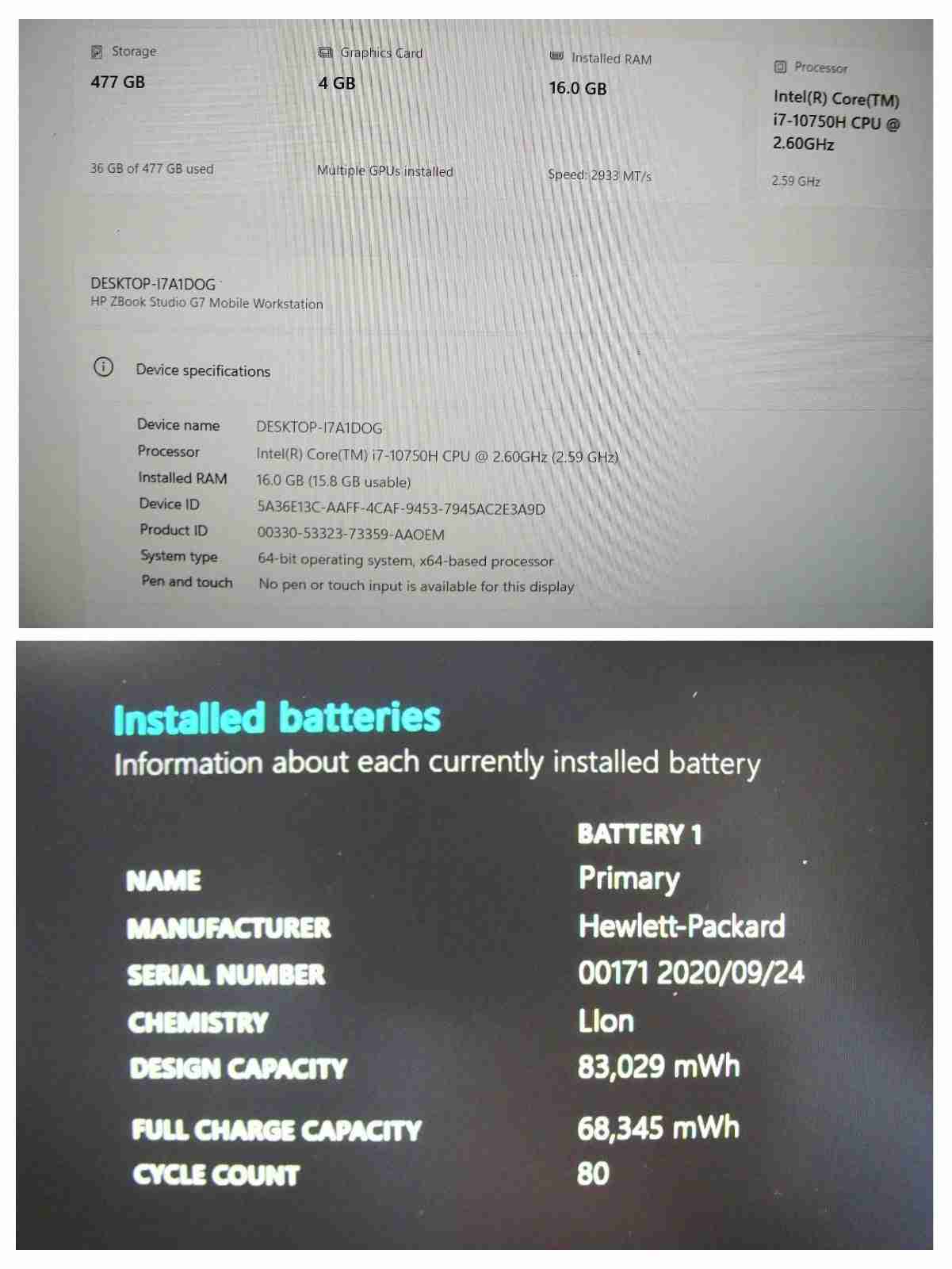 Model: HP ZBook Studio G7