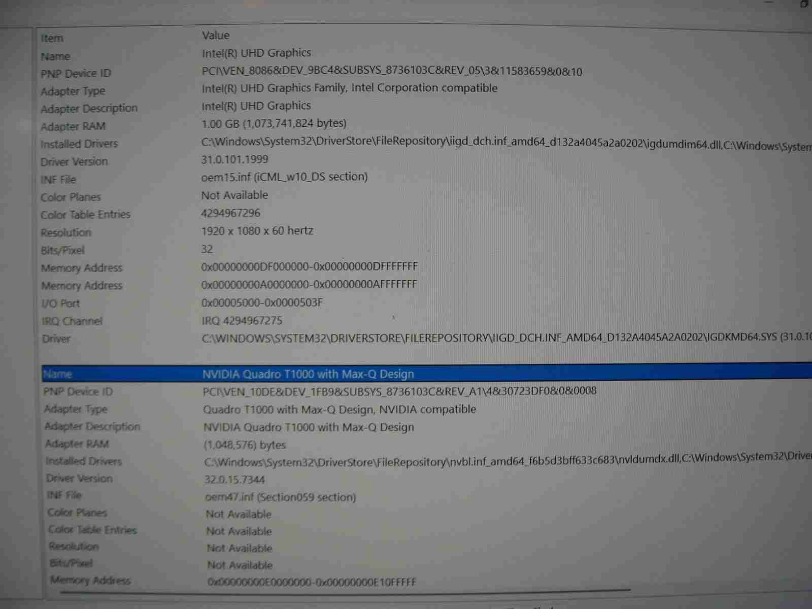 GPU: INVIDIA Quadro T1000 4GB
