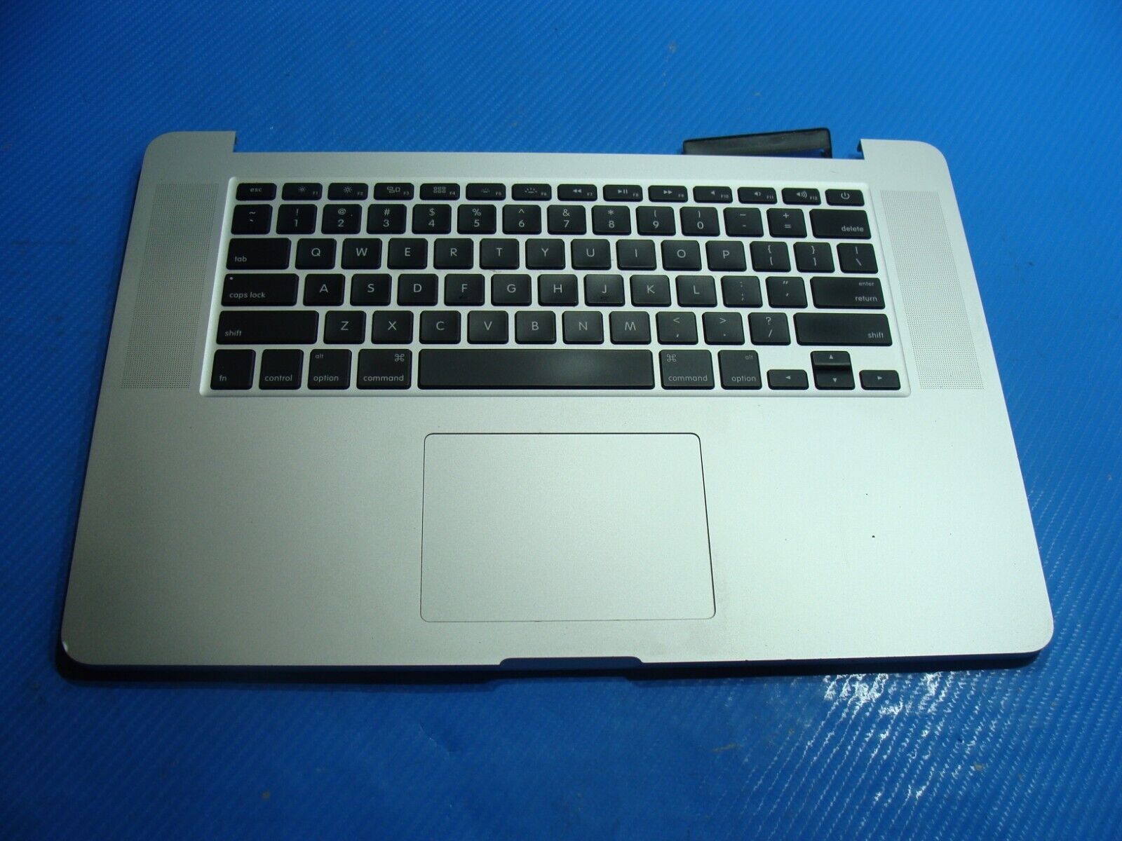 Top Case has been gently removed from a working MacBook Pro A1398 15" Late 2013 ME293LL/A and is in VERY GOOD working and cosmetic condition. Shows faint signs of previous use. Shiny keys. Shiny Touchpad. Actual item pictured.