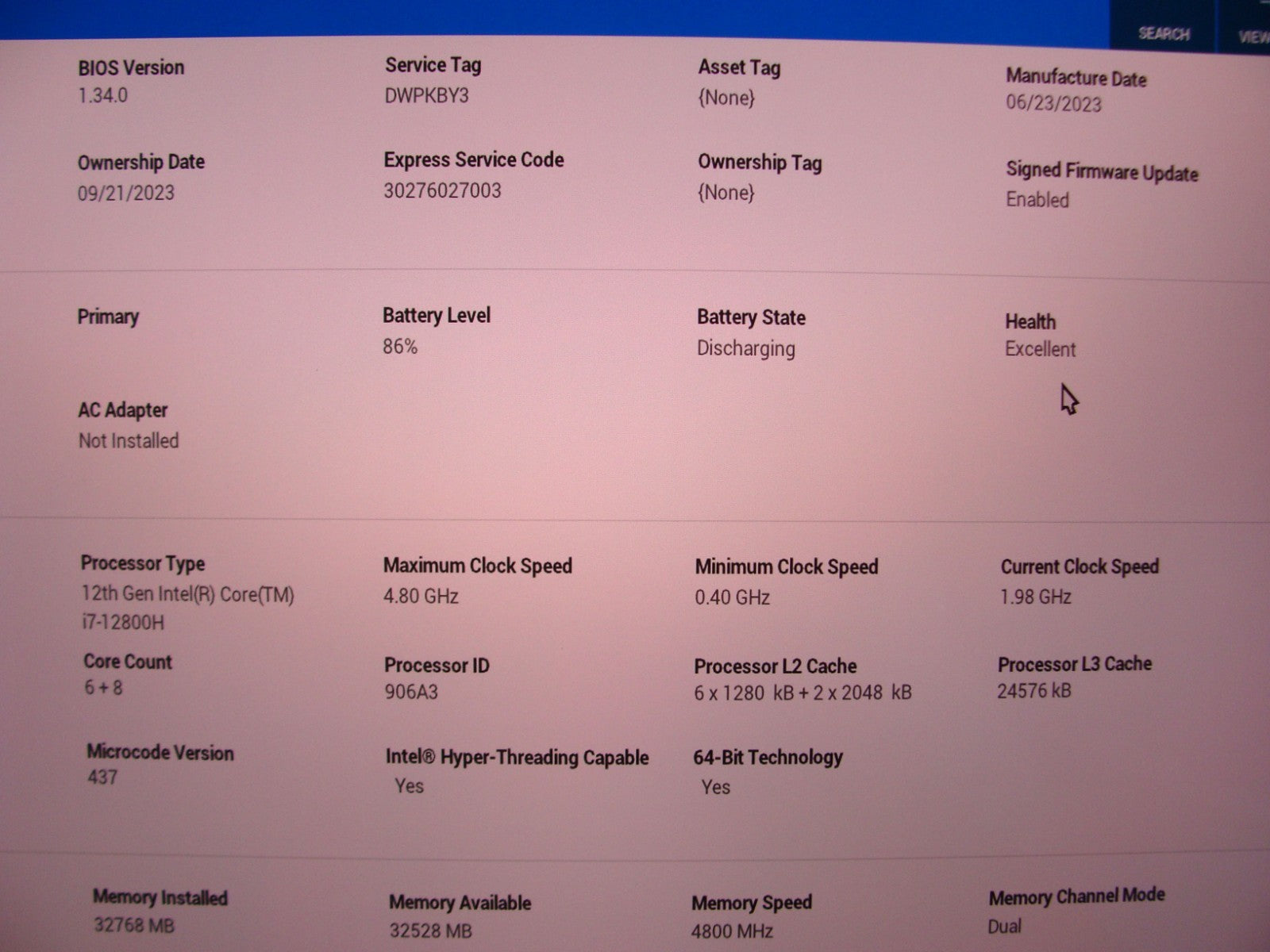 Battery in excellent according to bios (image attached).