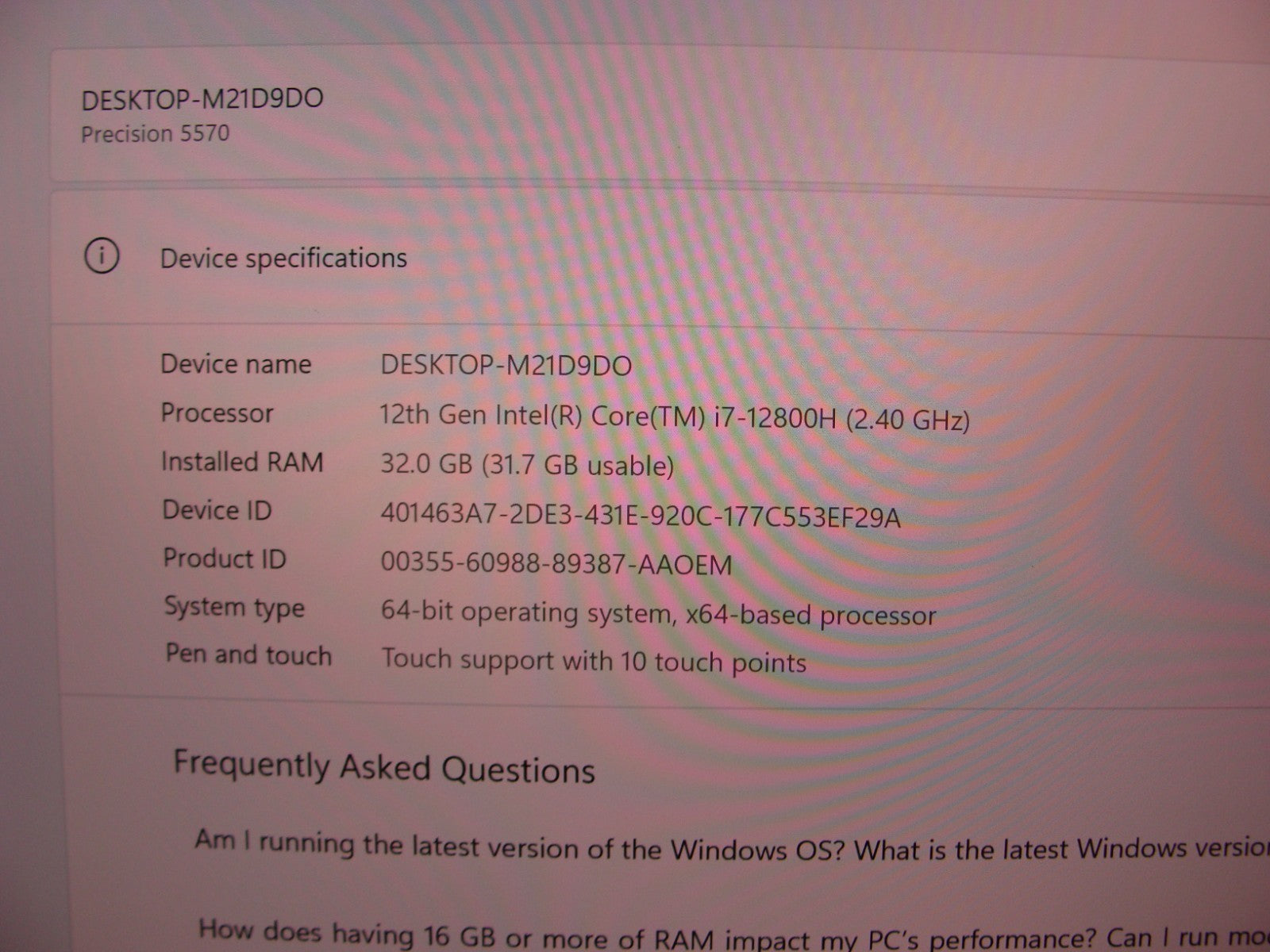 Beautiful Workstation Dell Precision 5570 15.6"UHD 4K TOUCH Intel Core vPRO i7-12800H 2.40 Ghz 32Gb RAM 512GB SSD Nvidia RTX A1000 4GB Warranty April 4, 2026