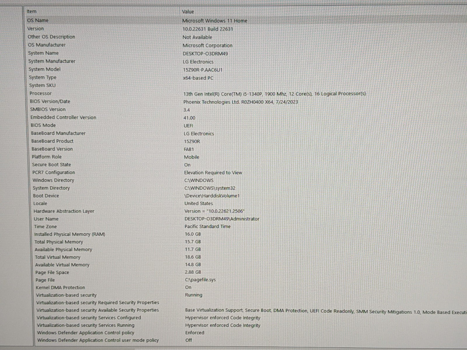 Model: LG Gram 15Z90R