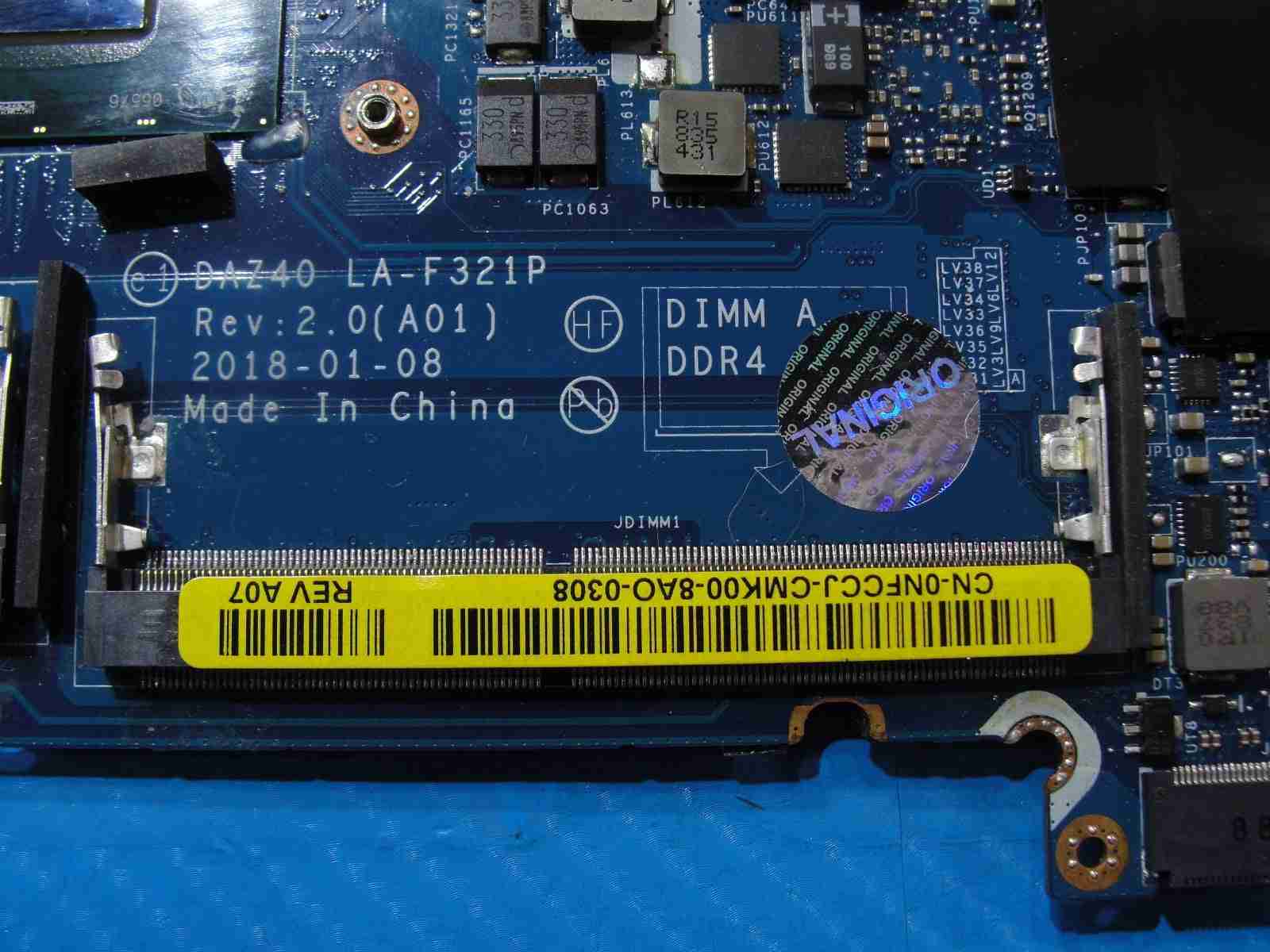 Dell Latitude 7490 14" Intel i7-8650U 1.9GHz Motherboard LA-F321P NFCCJ READ