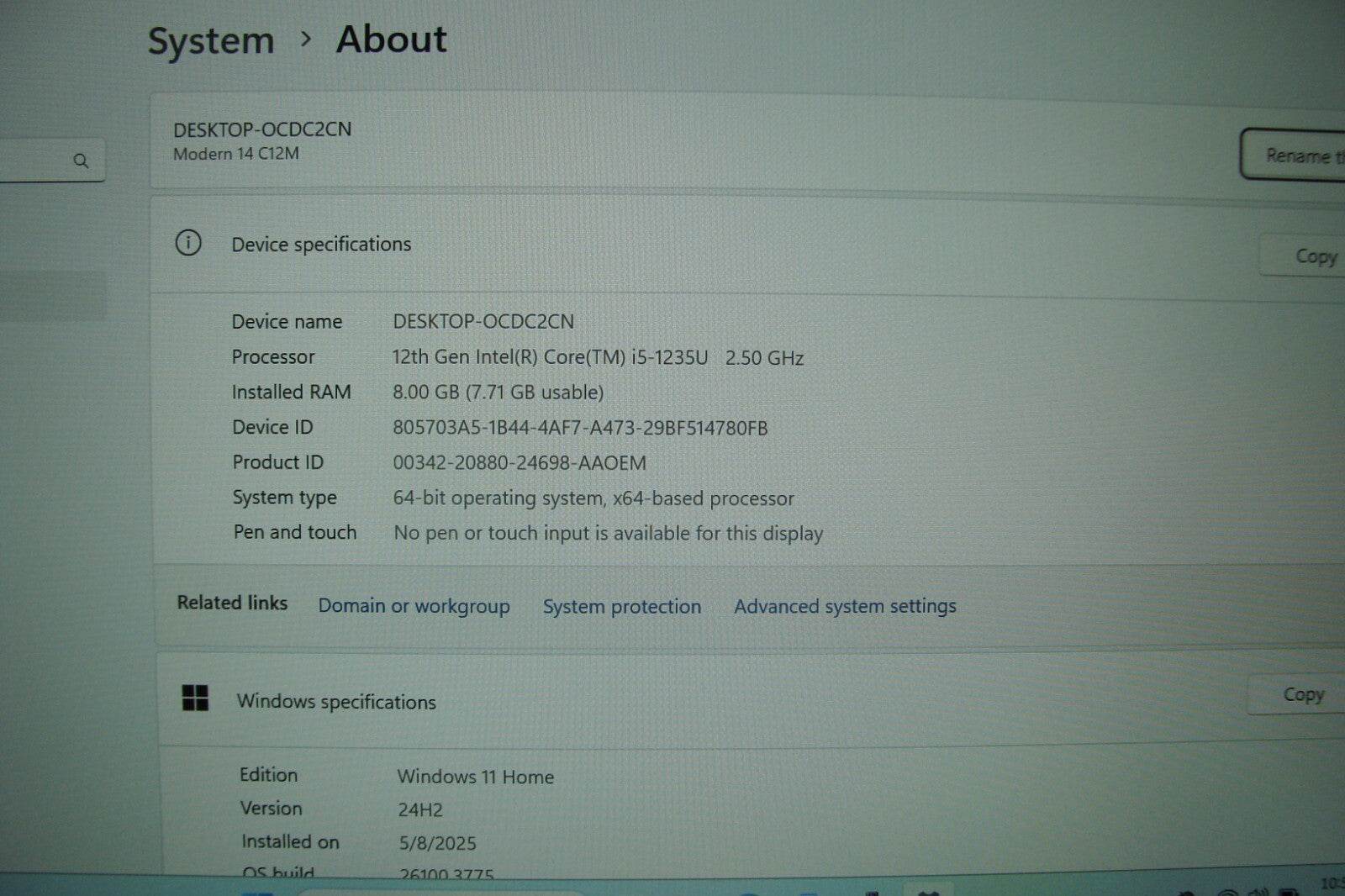 Model: MSI MODERN 14 C12M-032