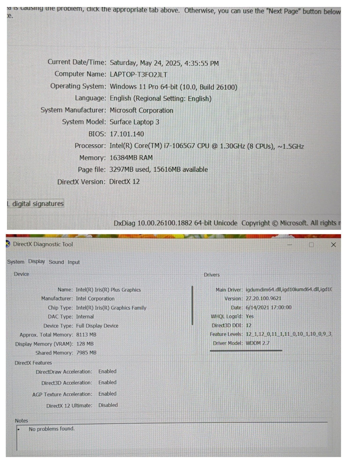 - MS Surface Laptop 3 1867:1868 13.5"2256x1504 TOUCH i7-1065G7 1.3Gh 16GB 256GB+PA MS Surface Laptop 3 1867:1868 13.5"2256x1504 TOUCH i7-1065G7 1.3Gh 16GB 256GB+PA