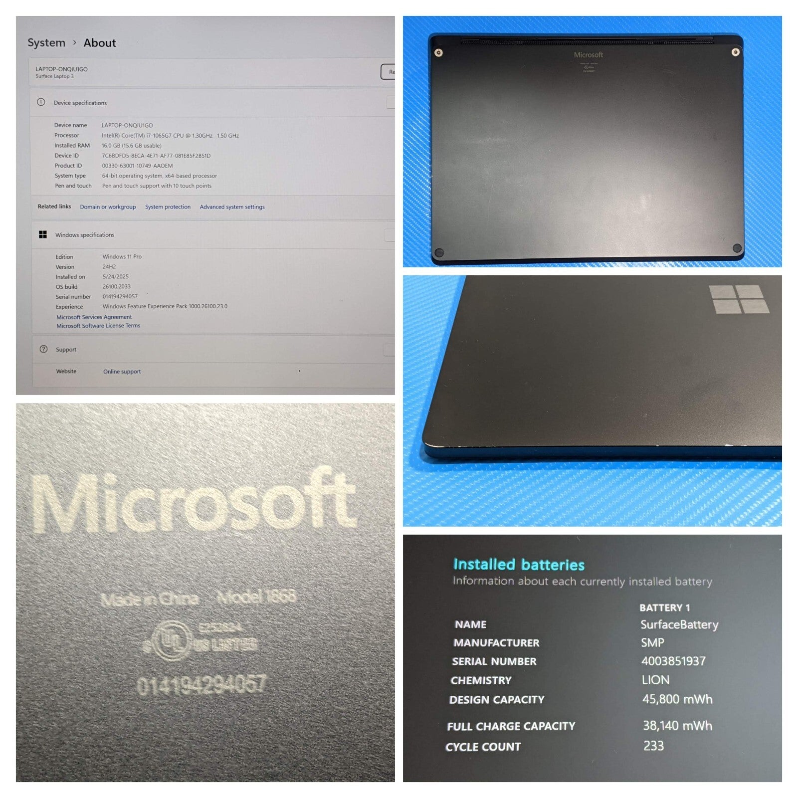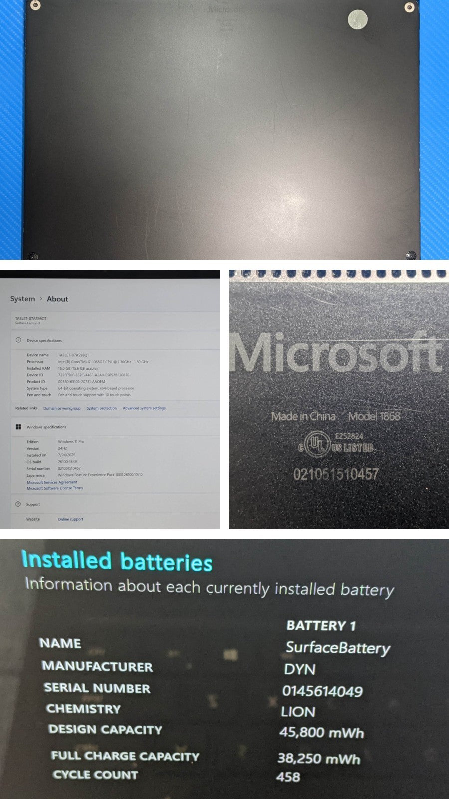 The photos are of the actual product. The battery is good (see description below; battery report image included). All ports are in working order. Power adapter is included. Item will be shipped within 24 hours of receiving payment (excluding weekends and holidays). Family owned business for 15 years. Buy with confidence. We value your time and business.